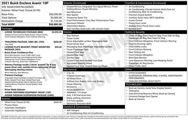Take your drives to the next level with this Buick Enclave from Salt Lake Valley Buick GMC! Engineered for a smooth ride, advanced convenience, and lasting dependability, this vehicle is ready to handle everything your day throws at you. Plus, enjoy a $1,000 finance savings, already included in the sale price, when you finance through one of our trusted lending partners. Looking for quality used cars in Salt Lake City? This Buick Enclave delivers style, versatility, and value - perfect for daily commutes, family trips, or weekend adventures. Stop by Salt Lake Valley Buick GMC to see this vehicle in person and explore our wide selection of pre-owned cars, trucks, and SUVs. Browse online at www.slvbuickgmc.com or call 801-265-1511 to schedule your test drive today! With 5000lbs Trailering Package (Heavy-Duty Cooling System, Hitch Guidance, and Hitch Guidance w/Hitch View), Avenir Package (120-Volt Power Outlet, 3rd Row 60/40 Power Fold Split-Bench, Automatic Heated Steering Wheel, Front Power Sliding Moonroof, HD Radio, HD Surround Vision, Heated 2nd Row Outboard Seats, Inside Rearview Mirror w/Full Camera Display, Outside Heated Power-Adjustable Mirrors, Power Tilt & Telescopic Steering Column, Wheels & Front Door Badging, and Wireless Charging), Avenir Premium Suspension Package (Chassis Continuously Variable Real Time Damping and Premium Ride Suspension), Avenir Technology Package (Adaptive Cruise Control and Enhanced Automatic Emergency Braking), Front Mounting License Plate Bracket Package, Memory Package, Preferred Equipment Group 1SP, 10 Speakers, 3.49 Axle Ratio, 3rd row seats: split-bench, 4-Wheel Disc Brakes, 7-Passenger Seating, ABS brakes, Air Conditioning, Alloy wheels, AM/FM radio: SiriusXM with 360L, Apple CarPlay/Android Auto, Audio memory, Auto High-beam Headlights, Auto tilt-away steering wheel, Auto-dimming door mirrors, Auto-dimming Rear-View mirror, Automatic temperature control, Bose Performance-Enhanced 10-Speaker System, Brake assist, Bumpers: body-color, Compass, Delay-off headlights, Driver 4-Way Power Lumbar Seat Adjuster, Driver door bin, Driver vanity mirror, Dual front impact airbags, Dual front side impact airbags, Electronic Stability Control, Emergency communication system: OnStar and Buick connected services capable, Four wheel independent suspension, Front anti-roll bar, Front Bucket Seats, Front Center Armrest, Front dual zone A/C, Front Passenger 4-Way Power Lumbar Seat Adjuster, Front reading lights, Fully automatic headlights, Garage door transmitter, Heated door mirrors, Heated Driver & Front Passenger Seats, Heated front seats, Heated rear seats, Heated steering wheel, Illuminated entry, Leather steering wheel, Low tire pressure warning, Memory seat, Navigation System, Occupant sensing airbag, Outside temperature display, Overhead airbag, Overhead console, Panic alarm, Passenger door bin, Passenger vanity mirror, Perforated Leather-Appointed Seat Trim, Power door mirrors, Power driver seat, Power Liftgate, Power moonroof, Power passenger seat, Power steering, Power windows, Premium audio system: Buick Infotainment System, Radio data system, Radio: Buick Infotainment Sys AM/FM Stereo w/Nav, Rear air conditioning, Rear anti-roll bar, Rear reading lights, Rear window defroster, Rear window wiper, Remote keyless entry, Roof rack: rails only, Security system, SiriusXM w/360L, Speed control, Speed-sensing steering, Spoiler, Steering wheel memory, Steering wheel mounted audio controls, Tachometer, Telescoping steering wheel, Tilt steering wheel, Traction control, Trip computer, Turn signal indicator mirrors, Variably intermittent wipers, Ventilated Driver & Front Passenger Seats, Ventilated front seats, Voltmeter, and Wheels: 20 Aluminum w/Premium Pearl Nickel Finish designed for convenience and enjoyment, this Buick Enclave is ready to take you wherever you want to go.