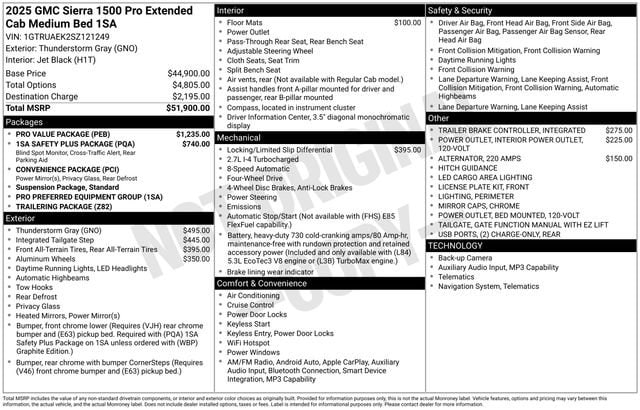 Take your drives to the next level with this GMC Sierra 1500 from Salt Lake Valley Buick GMC! Engineered for a smooth ride, advanced convenience, and lasting dependability, this vehicle is ready to handle everything your day throws at you. Plus, enjoy a $1,000 finance savings, already included in the sale price, when you finance through one of our trusted lending partners. Looking for quality used cars in Salt Lake City? This GMC Sierra 1500 delivers style, versatility, and value - perfect for daily commutes, family trips, or weekend adventures. Stop by Salt Lake Valley Buick GMC to see this vehicle in person and explore our wide selection of pre-owned cars, trucks, and SUVs. Browse online at www.slvbuickgmc.com or call 801-265-1511 to schedule your test drive today! With 1SA Safety Plus Package (Chrome Mirror Caps, Lane Change Alert w/Side Blind Zone Alert, Perimeter Lighting, Rear Cross Traffic Braking, and Ultrasonic Front & Rear Park Assist), Convenience Package (Deep-Tinted Glass, Electric Rear-Window Defogger, EZ Lift Power Lock & Release Tailgate, Heated Power-Adjustable Outside Mirrors, and LED Cargo Area Lighting), Preferred Equipment Group 1SA (2 Charge/Data USB Ports, 220 Amp Alternator, Chrome Header w/Flat Black Grille Insert Bars, Front Frame-Mounted Black Recovery Hooks, HD Rear Vision Camera, OnStar Services Capable, Power Door Locks, Power Front Windows w/Driver Express Up/Down, Power Front Windows w/Passenger Express Down, Power Rear Windows w/Express Down, Push Button Start, Remote Keyless Entry, Solar Absorbing Tinted Glass, and Wi-Fi Hotspot Capable), Pro Value Package, Standard Suspension Package, Trailering Package (Hitch Guidance), 120-Volt Bed Mounted Power Outlet, 120-Volt Interior Power Outlet, 2 Type-C Charge-Only Rear USB Ports, 3.42 Rear Axle Ratio, 4-Way Manual Driver Seat Adjuster, 4-Way Manual Passenger Seat Adjuster, 4-Wheel Disc Brakes, 6 Speakers, 6-Speaker Audio System Feature, ABS brakes, Air Conditioning, AM/FM radio, Apple CarPlay/Android Auto, Auto High-beam Headlights, Auto-Locking Rear Differential, Automatic Emergency Braking, Brake assist, Buckle to Drive, Bumpers: chrome, Color-Keyed Carpeting Floor Covering, Compass, Delay-off headlights, Driver door bin, Dual front impact airbags, Dual front side impact airbags, Electronic Stability Control, Emergency communication system: OnStar, Following Distance Indicator, Forward Collision Alert, Front 40/20/40 Split-Bench Seat, Front anti-roll bar, Front Center Armrest w/Storage, Front License Plate Kit, Front Pedestrian Braking, Front reading lights, Front Rubberized-Vinyl Floor Mats, Front wheel independent suspension, Fully automatic headlights, GMC MultiPro Tailgate, Illuminated entry, Integrated Trailer Brake Controller, IntelliBeam Automatic High Beam On/Off, Lane Keep Assist w/Lane Departure Warning, Low tire pressure warning, Occupant sensing airbag, Outside temperature display, Overhead airbag, Overhead console, Panic alarm, Passenger door bin, Passenger vanity mirror, Power steering, Power windows, Radio data system, Radio: GMC Infotainment Audio System, Rear reading lights, Rear Rubberized-Vinyl Floor Mats, Rear step bumper, Remote keyless entry, Speed control, Speed-sensing steering, Split folding rear seat, Tachometer, Tilt steering wheel, Traction control, Trip computer, Variably intermittent wipers, Vinyl Seat Trim, Voltmeter, Wheels: 17 x 8 Bright Silver Painted Aluminum, Wheels: 17 x 8 Silver Painted Steel, and Wireless Apple CarPlay/Wireless Android Auto designed for convenience and enjoyment, this GMC Sierra 1500 is ready to take you wherever you want to go.