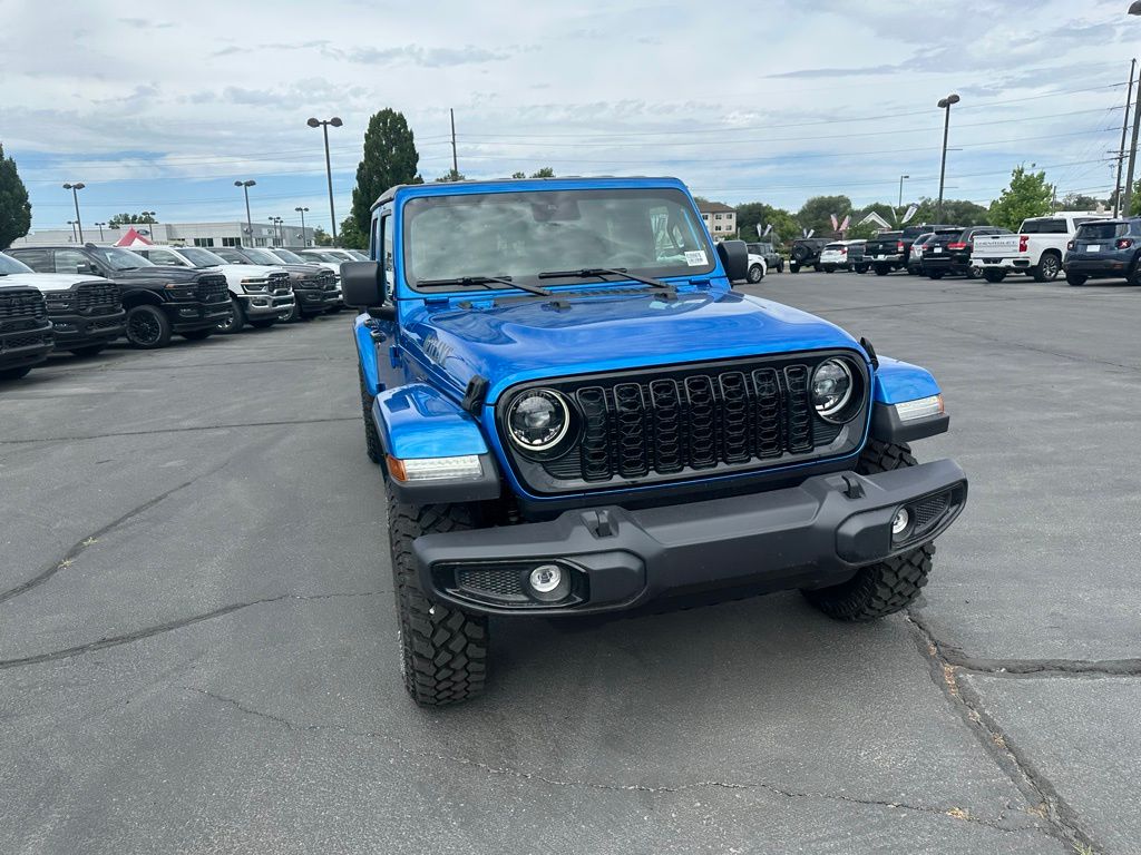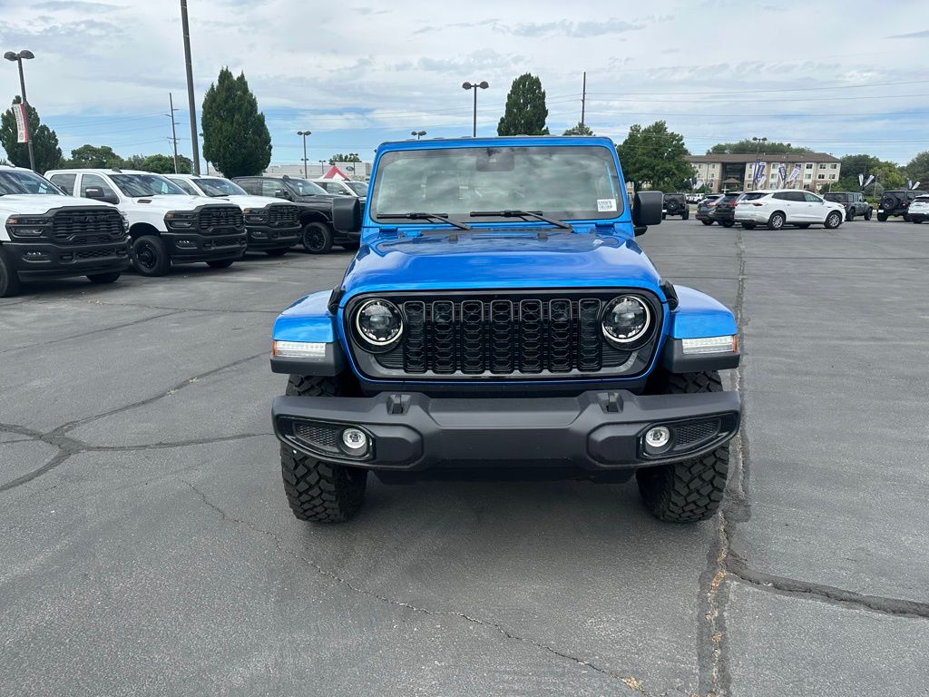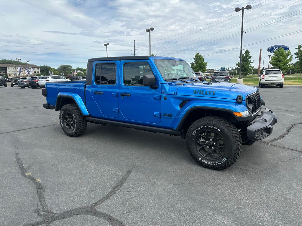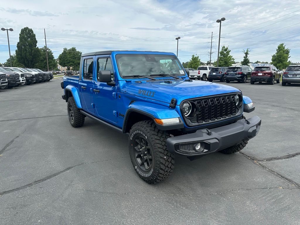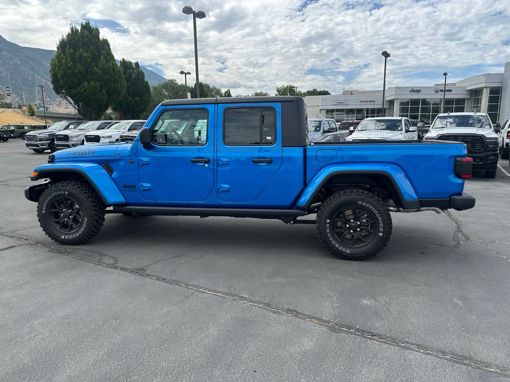 Adventure starts here with the new Jeep Gladiator, available now at Sky CDJR of Provo! As your local Jeep dealership near Salt Lake City, we know how to match Utah drivers with legendary 4x4 capability and open-road freedom. Whether itâs mountain trails or desert drives, the Gladiator is ready to take you there. Call 801-356-4100 today to start your next adventure! Hydro Blue Pearlcoat 2025 Jeep Gladiator Willys 4WD 8-Speed Automatic 3.6L V6 24V VVT