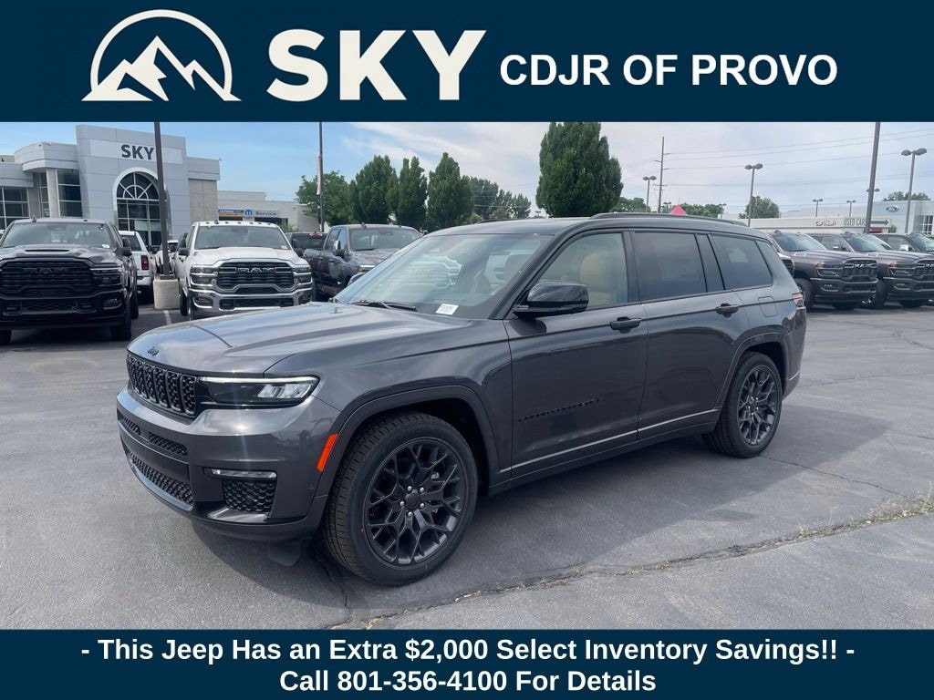 Advanced Protech Group IV (Heads-Up Display, Interior Rear Facing Camera, Night Vision/Pedestrian-Animal Detection, Rearview Autodim Digital Display Mirror, and Windshield Wiper De-Icer), High Altitude Package (Gloss Black Exterior Accents, Neutral Gray Exterior Accents, Painted Door Cladding, and Wheels: 21" x 9" Black Painted Aluminum), Luxury Tech Group V (2nd Row Manual Window Shades and Wireless Charging Pad), Quick Order Package 23U Summit Reserve (19 Speakers High Performance Audio, 950 Watt Amplifier, Active Noise Control System, Deluxe Headliner, Front Passenger Interactive Display, Palermo Leather Door Trim, Palermo Leather Seats, Summit, Summit Badge, Ventilated Rear Seats, and Wheels: 21" x 9.0" Machined Face/Painted Aluminum), Two Tone Paint Group, 10 Speakers, 3.45 Rear Axle Ratio, 3rd row seats: split-bench, 4-Wheel Disc Brakes, ABS brakes, Adaptive suspension, Air Conditioning, Alloy wheels, AM/FM radio: SiriusXM with 360L, Anti-whiplash front head restraints, Audio memory, Auto High-beam Headlights, Auto-dimming door mirrors, Auto-dimming Rear-View mirror, Auto-leveling suspension, Automatic temperature control, Aux Battery, Brake assist, Bumpers: body-color, Compass, Delay-off headlights, Driver door bin, Driver vanity mirror, Dual front impact airbags, Dual front side impact airbags, Electronic Stability Control, Emergency communication system, Four wheel independent suspension, Front anti-roll bar, Front Bucket Seats, Front Center Armrest w/Storage, Front dual zone A/C, Front fog lights, Front License Plate Bracket, Front reading lights, Fully automatic headlights, Garage door transmitter, Genuine wood dashboard insert, Genuine wood door panel insert, Hands-Free Active Driving Assist System, Heated door mirrors, Heated front seats, Heated rear seats, Heated steering wheel, Illuminated entry, Knee airbag, Leather steering wheel, Low tire pressure warning, Memory seat, Model Year Tracking, Nappa Leather Seats, Navigation System, Normal Duty Suspension, Occupant sensing airbag, Outside temperature display, Overhead airbag, Overhead console, Panic alarm, Passenger door bin, Passenger vanity mirror, Power door mirrors, Power driver seat, Power Fold Seatbacks, Power Liftgate, Power moonroof, Power passenger seat, Power steering, Power windows, Radio data system, Radio: Uconnect 5 Nav w/10.1" Display, Rain sensing wipers, Rear air conditioning, Rear anti-roll bar, Rear dual zone A/C, Rear reading lights, Rear seat center armrest, Rear window defroster, Rear window wiper, Reclining 3rd row seat, Remote keyless entry, Security system, Speed control, Speed-Sensitive Wipers, Split folding rear seat, Spoiler, Steering wheel memory, Steering wheel mounted audio controls, Tachometer, Telescoping steering wheel, Tilt steering wheel, Traction control, Trip computer, Turn signal indicator mirrors, Variably intermittent wipers, Ventilated front seats, Voltmeter, and Wheels: 20" x 8.5" Fully Painted Aluminum Silver. Price may include: $2000 - 2025 National Retail Bonus Cash . Exp. 11/03/2025 ...$2,000 Select Inventory Bonus Cash May not be combined with some offers. Residency restrictions apply see dealer for details $1,500 trade in allowance program for customers that own a 2018 or newer passenger car or truck with less than 80,000 miles and trade in their vehicle towards the purchase of a new vehicle. Some restrictions may apply. Contact dealer for details. $2,000 Down Payment Assistance. Must Finance with CCAP. May not be combined with some factory incentives. Contact dealer for details.