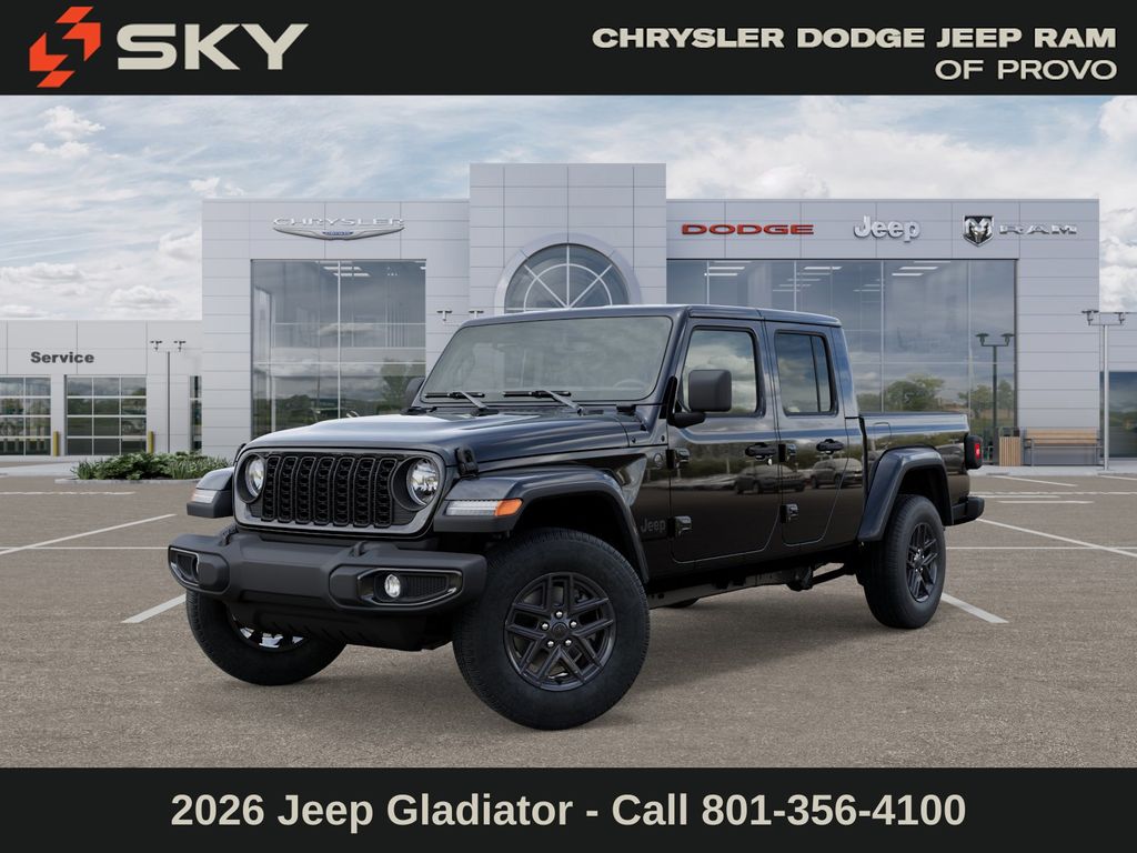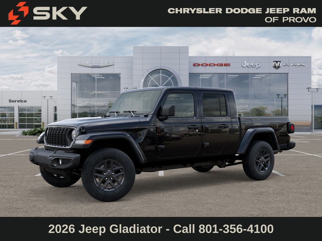Adventure starts here with the new Jeep Gladiator, available now at Sky CDJR of Provo! As your local Jeep dealership near Salt Lake City, we know how to match Utah drivers with legendary 4x4 capability and open-road freedom. Whether itâs mountain trails or desert drives, the Gladiator is ready to take you there. Call 801-356-4100 today to start your next adventure! Black Clearcoat 2026 Jeep Gladiator Sport S 4WD 8-Speed Automatic 3.6L V6 24V VVT