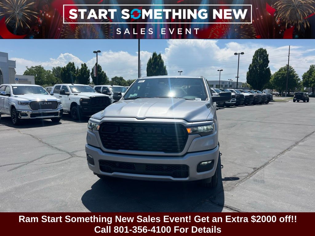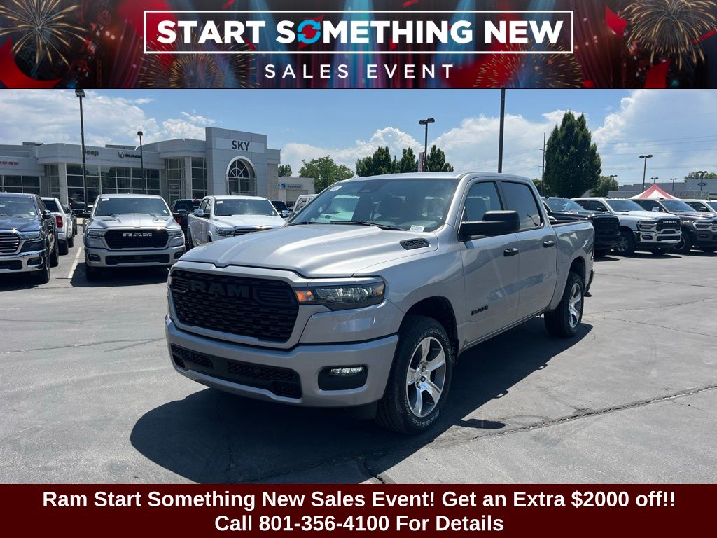 Bed Utility Group (400W Inverter, MOPAR 4 Adjustable Cargo Tie-Down Hooks, MOPAR Deployable Bed Step, MOPAR Spray In Bedliner, and Pick-Up Box Lighting), Quick Order Package 21A Tradesman, Sport Appearance Package (Black Interior Accents, Body Color Front Bumper, Body Color Rear Bumper w/Step Pads, Bridgestone Brand Tires, Front LED Fog Lamps, Grille Surround 1 Body Color Texture 1 Black, and Wheels: 20" x 9.0" Aluminum Polished Painted), Tradesman Level 1 Equipment Group (2nd Row In Floor Storage Bins, 3 Rear Seat Head Restraints, 4 Way Front Headrests, 40/20/40 Split Bench Seat, Cloth Bench Seat, Front & Rear Floor Mats, Front Center Seat Cushion Storage, Front Seat Back Map Pockets, Manual Adjust 4-Way Driver Seat, Manual Adjust 4-Way Front Passenger Seat, Rear 60/40 Folding Seat, Rear Power Sliding Window, Seat Parts Module II, and SiriusXM Satellite Radio), 4-Wheel Disc Brakes, 6 Speakers, ABS brakes, Air Conditioning, AM/FM radio, Apple CarPlay/Android Auto, Auto High-beam Headlights, Black Exterior Mirrors, Brake assist, Compass, Delay-off headlights, Driver door bin, Dual front impact airbags, Dual front side impact airbags, Electronic Stability Control, Exterior Mirrors w/Heating Element, Front anti-roll bar, Front Center Armrest, Front License Plate Bracket, Front reading lights, Front wheel independent suspension, Fully automatic headlights, Heated door mirrors, Heavy Duty Vinyl 40/20/40 Split Bench Seat, Illuminated entry, Low tire pressure warning, Manual Folding Exterior Mirrors, Manufacturer's Statement of Origin, Occupant sensing airbag, Outside temperature display, Overhead airbag, Overhead console, Panic alarm, ParkView Rear Back-Up Camera, Passenger door bin, Passenger vanity mirror, Power door mirrors, Power steering, Power windows, Radio data system, Radio: Uconnect 5 W w/8.4" Display, RAM Grille Badge - Black, Rear anti-roll bar, Rear step bumper, Remote keyless entry, Speed control, Tachometer, Telescoping steering wheel, Tilt steering wheel, Traction control, Trailer Brake Control, Variably intermittent wipers, Voltmeter, and Wheels: 18" x 7.5" Steel Painted. Price may include: 10% Msrp - 2025 National 10% Below MSRP . Exp. 02/02/2026 ..$2,000 Select Inventory Bonus Cash May not be combined with some offers. Residency restrictions apply see dealer for details $1,500 trade in allowance program for customers that own a 2018 or newer passenger car or truck with less than 80,000 miles and trade in their vehicle towards the purchase of a new vehicle. Some restrictions may apply. Contact dealer for details. ...Sale price includes a $2,500 conditional Ram finance discount. To qualify, customer must finance or lease through Chrysler Capital. Factory-subsidized interest rate loans are not eligible. If customer does not finance or lease through Chrysler Capital, the $2,500 finance discount will not apply and sale price will increase by $2,500. Some restrictions may apply. See dealer for details.