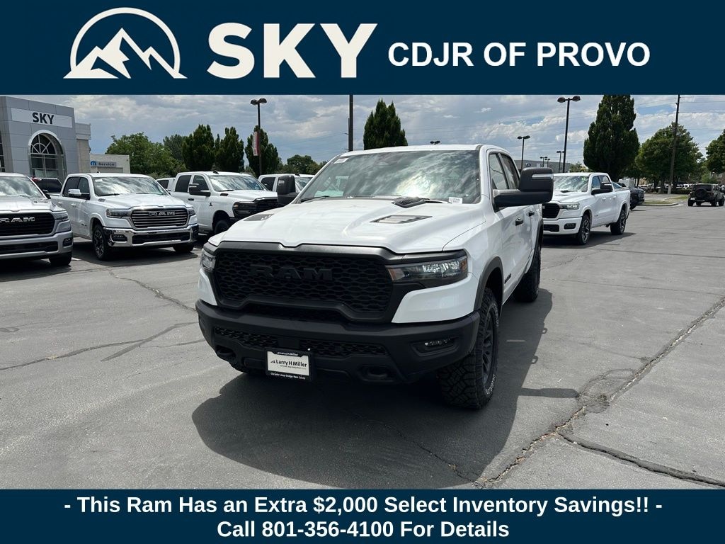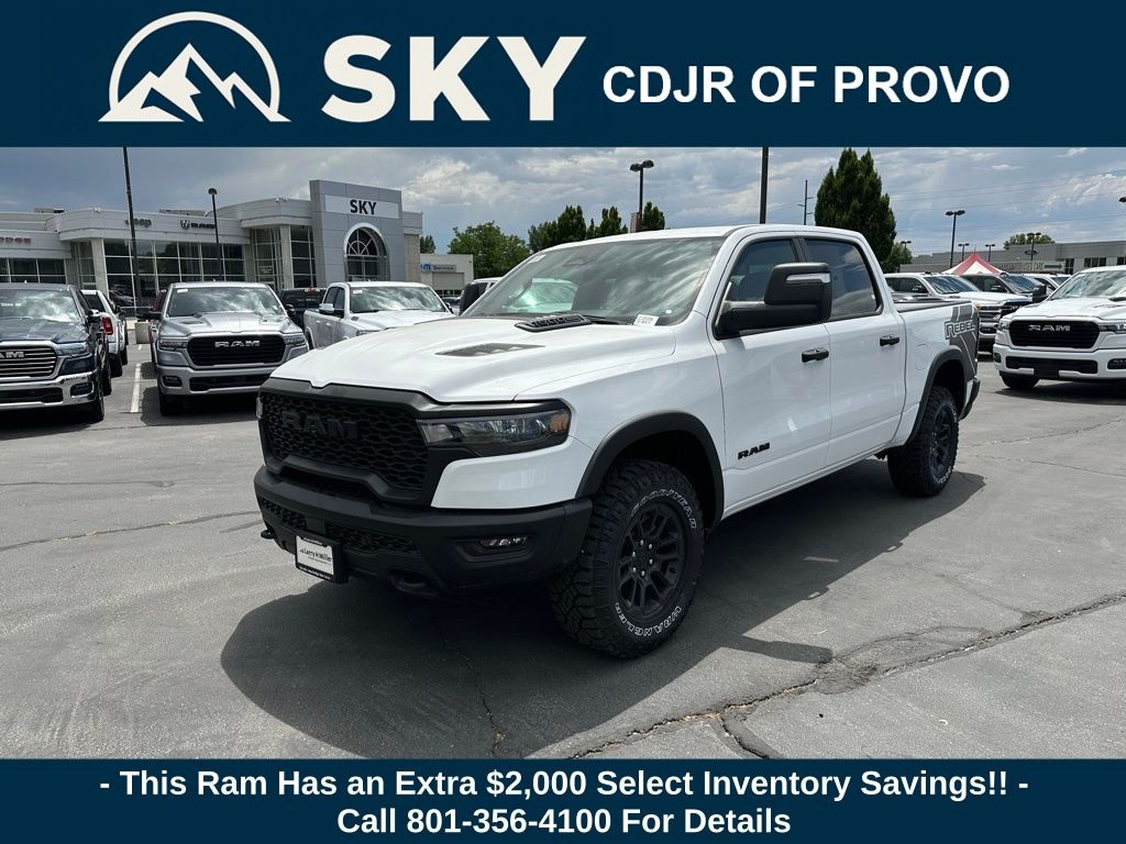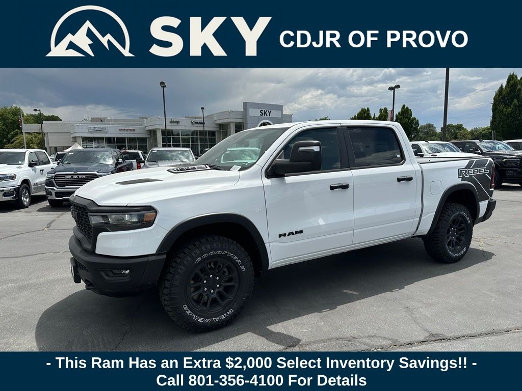 Quick Order Package 21W Rebel, Rebel Level 1 Equipment Group (Auto Power-Folding Mirrors, Auto-Dimming Exterior Driver Mirror, Black Premium Power Mirrors, Convex Wide-Angle Exterior Mirror Insert, Exterior Mirrors Courtesy Lamps, Exterior Mirrors w/Heating Element, Exterior Mirrors w/Supplemental Signals, Power Adjustable Pedals, Rear Window Defroster, Remote Tailgate Release, and Wireless Charging Pad), Trailer Tow Group (Accent Color Tailgate Handle, Auto-Dimming Exterior Passenger Mirror, Exterior Mirrors w/Memory, Forward & Reverse Utility Lights, Manual Folding Exterior Mirrors, Manual Telescoping Mirrors, Mirror Clearance/Running Lights, Power Telescoping Mirrors, Power-Adjustable Convex Aux Mirrors, Trailer Brake Control, Trailer Light Check, Trailer Reverse Steering Control, Trailer Tire Pressure Monitoring System, and Trailer Tow Mirrors), 10 Speakers, 3.92 Rear Axle Ratio, 4 Way Front Headrests, 4-Wheel Disc Brakes, 4G LTE Wi-Fi Hot Spot, ABS brakes, Air Conditioning, Alloy wheels, AM/FM radio: SiriusXM with 360L, Apple CarPlay, Apple CarPlay/Android Auto, Auto High-beam Headlights, Auto-dimming Rear-View mirror, Automatic temperature control, Brake assist, Bucket Seats, Cloth/Vinyl Bucket Seats, Compass, Connected Travel & Traffic Services, Connectivity - US/Canada, Delay-off headlights, Driver door bin, Driver vanity mirror, Dual front impact airbags, Dual front side impact airbags, Electronic Stability Control, Front anti-roll bar, Front Bucket Seats, Front Center Armrest w/Storage, Front dual zone A/C, Front fog lights, Front License Plate Bracket, Front reading lights, Front Seat Back Map Pockets, Front wheel independent suspension, Full Length Upgraded Floor Console, Fully automatic headlights, Garage door transmitter, Google Android Auto, GPS Antenna Input, GPS Navigation, Heated door mirrors, Heated front seats, Heated steering wheel, Illuminated entry, Integrated Voice Command w/Bluetooth, Leather steering wheel, Low tire pressure warning, Manufacturer's Statement of Origin, Navigation System, Occupant sensing airbag, Outside temperature display, Overhead airbag, Overhead console, Panic alarm, ParkView Rear Back-Up Camera, Passenger door bin, Passenger vanity mirror, Power Adjust 8-Way Driver Seat, Power door mirrors, Power driver seat, Power steering, Power windows, Radio data system, Radio: Uconnect 5 Nav w/12.0" Display, Rear 60/40 Folding Seat, Rear anti-roll bar, Rear seat center armrest, Rear step bumper, Remote keyless entry, SiriusXM w/360L, Speed control, Split folding rear seat, Steering wheel mounted audio controls, Tachometer, Telescoping steering wheel, Tilt steering wheel, Traction control, Trip computer, USB Host Flip, Variably intermittent wipers, Voltmeter, and Wheels: 18" x 8.0" Painted Mid-Gloss Black. Price may include: 10% Msrp - 2025 National 10% Below MSRP . Exp. 11/03/2025 ...$2,000 Select Inventory Bonus Cash May not be combined with some offers. Residency restrictions apply see dealer for details $1,500 trade in allowance program for customers that own a 2018 or newer passenger car or truck with less than 80,000 miles and trade in their vehicle towards the purchase of a new vehicle. Some restrictions may apply. Contact dealer for details. $2,000 Down Payment Assistance. Must Finance with CCAP. May not be combined with some factory incentives. Contact dealer for details.