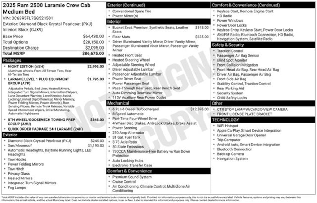 Get the job done and have fun doing it with the new Ram 2500 from Salt Lake Valley CDJR! Power, durability, and innovation come together in every Ram truck. Whether youâre working hard or exploring Utahâs backroads, the 2500 is built to handle it all. Call us today at 801-484-8755 to schedule a time to check it out! 2025 Ram 2500 Laramie Diamond Black Crystal Pearlcoat 6.7L I6