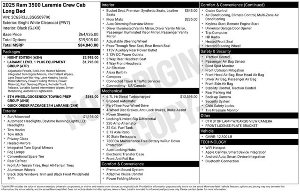 Get the job done and have fun doing it with the new Ram 3500 from Salt Lake Valley CDJR! Power, durability, and innovation come together in every Ram truck. Whether youâre working hard or exploring Utahâs backroads, the 3500 is built to handle it all. Call us today at 801-484-8755 to schedule a time to check it out! 2025 Ram 3500 Laramie Bright White Clearcoat 6.7L I6
