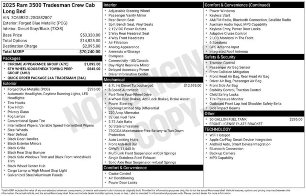 - Engine: 6.7L I6 Cummins HO Turbo Diesel$12,595