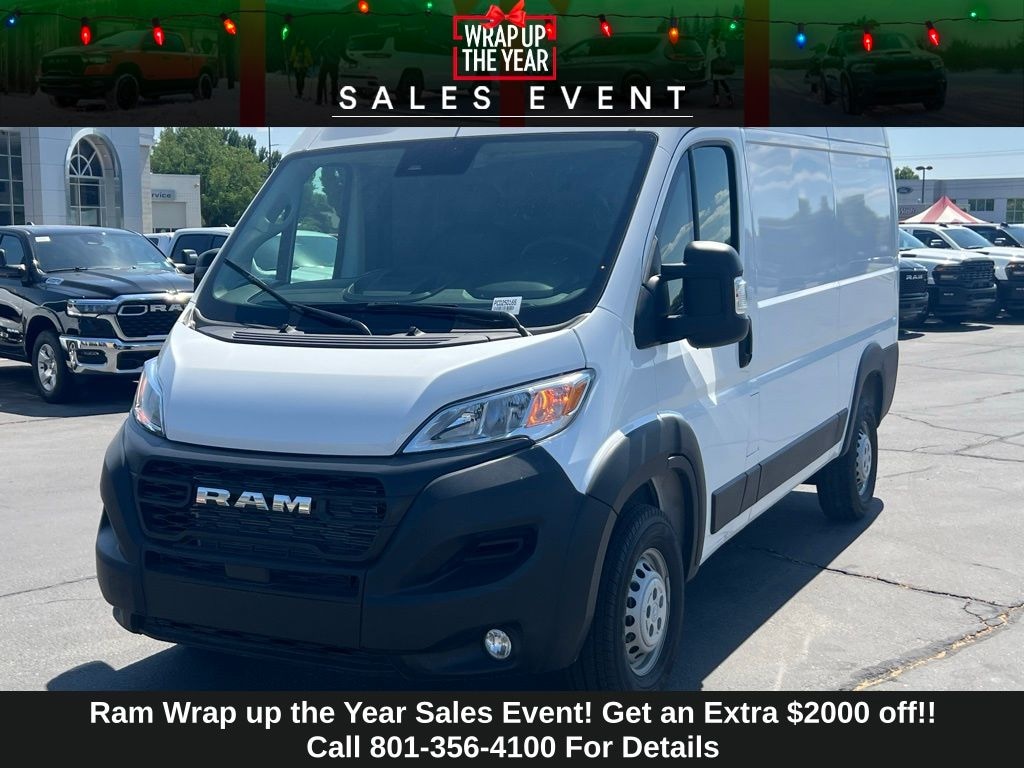 Convenience Group (Exterior Mirrors w/Heating Element, Exterior Mirrors w/Supplemental Signals, Front Fog Lamps, Power Adjust Mirrors, Power Folding/Heated Mirrors, Power-Adjustable Convex Aux Mirrors, Power-Folding Mirrors, and Rear Cargo LED Lamp), Power Group (100 Amp Battery, 115V Auxiliary Power Outlet, and 12V Rear Auxiliary Power Outlet), Quick Order Package 22B Tradesman w/Pass Seat (4-Way Manual Adjust Front Passenger Seat and Passenger Bucket Seat), Storage Group (Cargo Net, Shelf Above Roof Trim, and Underseat Storage Tray), Upfitter's Prep Package (Auxiliary Switches and Upfitter Electronic Module (VSIM)), 4 Speakers, 4-Wheel Disc Brakes, 4.08 Axle Ratio, 4G LTE Wi-Fi Hotspot, ABS brakes, Adaptive Cruise Control w/Stop & Go, Air Conditioning, AM/FM radio: SiriusXM, Apple CarPlay, Apple CarPlay/Android Auto, Black/Gray Seats, Bodyside moldings, Brake assist, Class IV Receiver Hitch, Cloth Bucket Seats, Connectivity - US/Canada, Driver door bin, Driver Seat Armrest, Driver's Seat Mounted Armrest, Electronic Stability Control, For Details, Visit DriveUconnect.com, For More Info, Call 800-643-2112, Front anti-roll bar, Front Bucket Seats, Front License Plate Bracket, Front reading lights, Front wheel independent suspension, Global Telematics Box Module (TBM), Google Android Auto, GPS Antenna Input, Illuminated entry, Low tire pressure warning, Manufacturer's Statement of Origin, Medium Duty Suspension, MOPAR Cargo Compartment Floor Mat, Outside temperature display, Overhead airbag, Overhead console, ParkSense Rear Park Assist System, ParkView Rear Back-Up Camera, Passenger door bin, Power steering, Power windows, Radio: Uconnect 5 w/7" Display, Remote keyless entry, SiriusXM Radio Service, Steering wheel mounted audio controls, Tachometer, Telescoping steering wheel, Traction control, Trip computer, Turn signal indicator mirrors, Variably intermittent wipers, Wheel Center Cap, and Wheels: 16" x 6.0" SteeL. Price may include: $2500 - 2025 National Bonus Cash . Exp. 01/05/2026 ...$2,000 Select Inventory Bonus Cash May not be combined with some offers. Residency restrictions apply see dealer for details $1,500 trade in allowance program for customers that own a 2018 or newer passenger car or truck with less than 80,000 miles and trade in their vehicle towards the purchase of a new vehicle. Some restrictions may apply. Contact dealer for details. $2,000 Down Payment Assistance. Must Finance with CCAP. May not be combined with some factory incentives. Contact dealer for details.