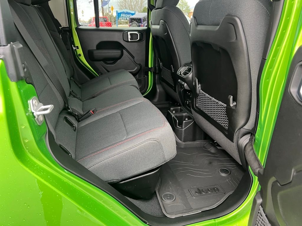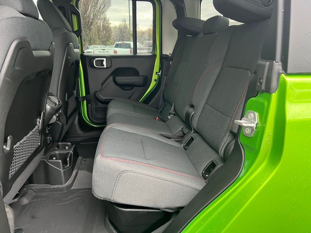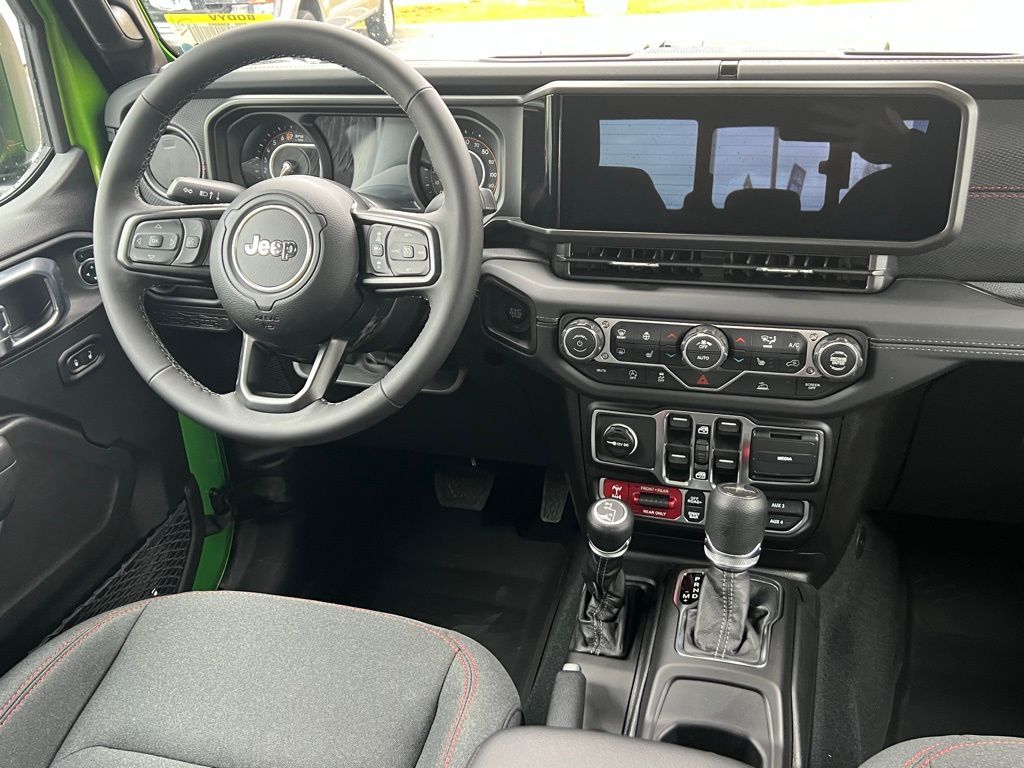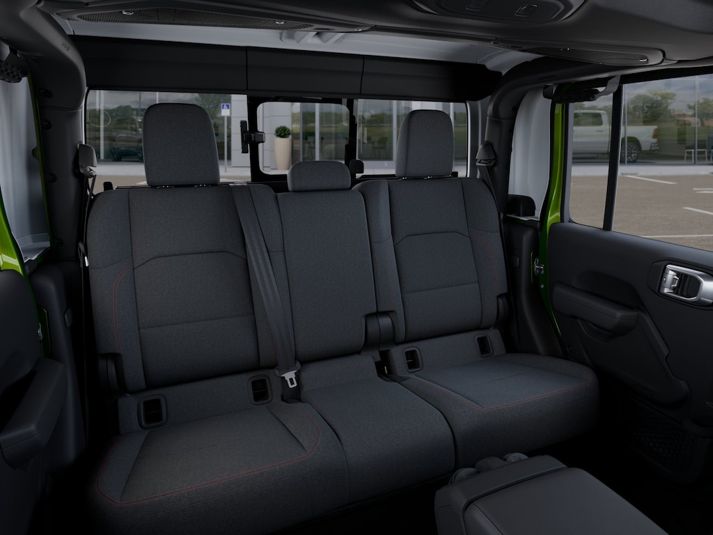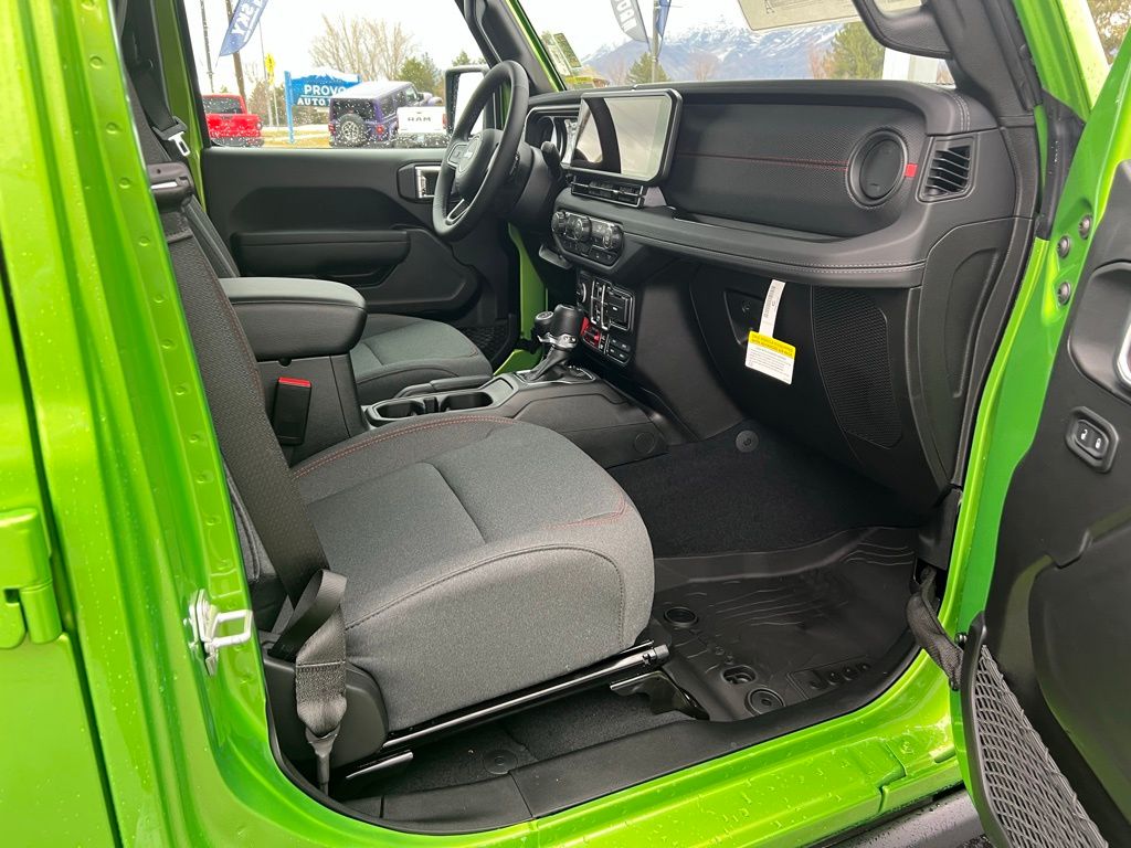 Convenience Group (Heated Front Seats, Heated Steering Wheel, Remote Start System, and Universal Garage Door Opener), Quick Order Package 24R Rubicon, Steel Power Dome Hood Package (Power Dome Dual Vented Hood), 110 Mph Vehicle Max Speed Calibration, 12.3" Touchscreen Display, 4-Wheel Disc Brakes, 4.10 Rear Axle Ratio, 4G LTE Wi-Fi Hot Spot, 8 Speakers, ABS brakes, Air Conditioning, Alexa Built-in, Alloy wheels, AM/FM radio: SiriusXM with 360L, Apple CarPlay, Apple CarPlay/Android Auto, Automatic temperature control, Black 3-Piece Hard Top, Brake assist, Cloth Low-Back Bucket Seats, Compass, Connectivity - US/Canada, Delay-off headlights, Driver door bin, Driver vanity mirror, Dual front impact airbags, Dual front side impact airbags, Electronic Stability Control, Emergency communication system: Jeep Connect, Freedom Panel Storage Bag, Front anti-roll bar, Front Bucket Seats, Front Center Armrest w/Storage, Front dual zone A/C, Front fog lights, Front License Plate Bracket, Front reading lights, Fully automatic headlights, Google Android Auto, Heated door mirrors, Illuminated entry, Integrated roll-over protection, Low tire pressure warning, MOPAR All-Weather Slush Mats, MOPAR Spray in Bedliner, Occupant sensing airbag, Outside temperature display, Overhead airbag, Panic alarm, Passenger door bin, Passenger vanity mirror, Performance Suspension, Power door mirrors, Power steering, Power windows, Radio data system, Radio: Uconnect 5 with 12.3" Display, Rear anti-roll bar, Rear reading lights, Rear Sliding Window, Rear Window Defroster, Remote keyless entry, Security system, Speed control, Split folding rear seat, Steering wheel mounted audio controls, Tachometer, Telescoping steering wheel, Tilt steering wheel, Traction control, Trip computer, USB Host Flip, Variably intermittent wipers, Voltmeter, and Wheels: 17" x 7.5" Machined/Painted Black. $1,500 trade in allowance program for customers that own a 2018 or newer passenger car or truck with less than 80,000 miles and trade in their vehicle towards the purchase of a new vehicle. Some restrictions may apply. Contact dealer for details. ...Sale price includes a $2,000 conditional finance discount. To qualify, customer must finance or lease through Chrysler Capital. Factory-subsidized interest rate loans are not eligible. If customer does not finance or lease through Chrysler Capital, the $2,000 finance discount will not apply and sale price will increase by $2,000. Some restrictions may apply. See dealer for details.