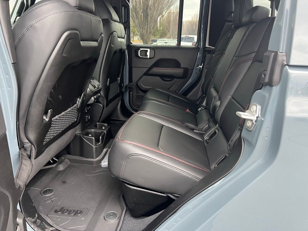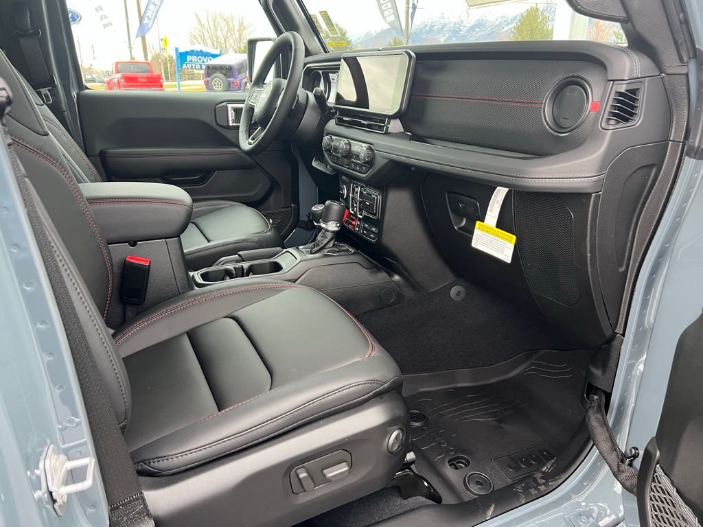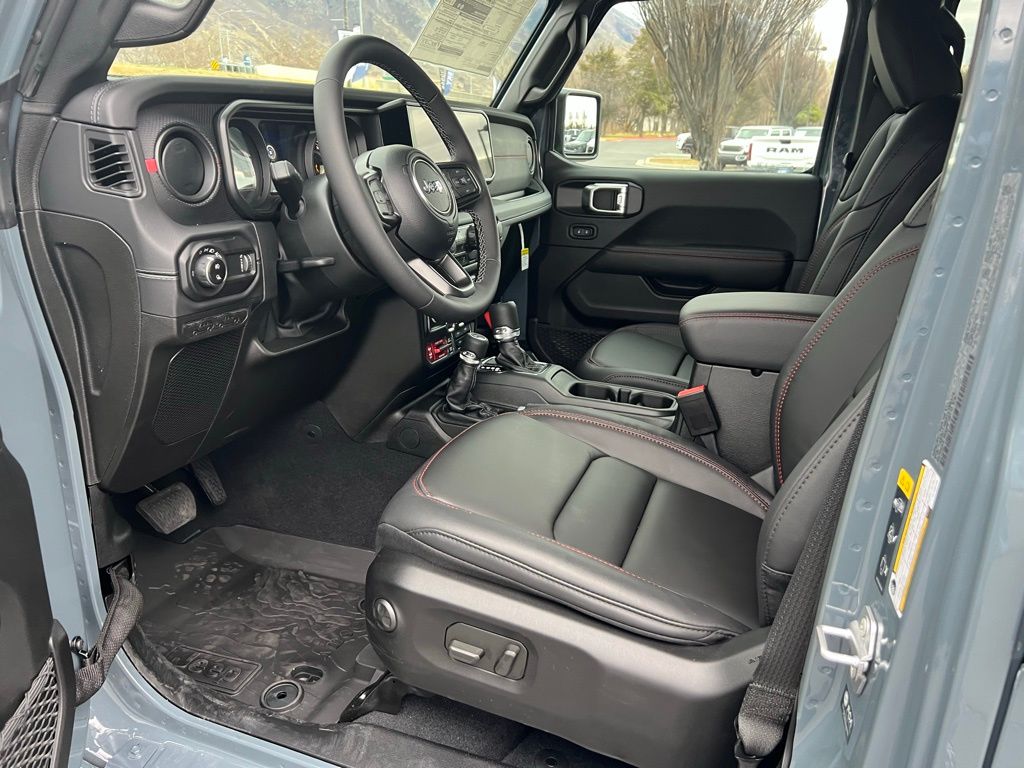 Quick Order Package 24Y Rubicon X (Alpine Premium Audio System, Auto High Beam Headlamp Control, Auto-Dimming Rear-View Mirror, Blind Spot and Cross Path Detection, Bluetooth Wireless Speaker, Body Color 3-Piece Hard Top, Body Color Rubicon Highline Flare, Freedom Panel Storage Bag, Full Length Floor Console Premium Armrest, Heated Front Seats, Heated Steering Wheel, Integrated Off-Road Camera, Integrated Voice Command with Bluetooth, Leather Wrapped Park Brake Handle, Leather Wrapped Shift Knob, MOPAR Hardtop Headliner, ParkSense Rear Park Assist System, Power 4-Way Driver Lumbar Adjust, Power 4-Way Passenger Lumbar Adjust, Power Adjust 8-Way Driver Seat, Power Adjust 8-Way Front Passenger Seat, Power Adjust Nappa Leather Seats, Premium Door Trim Panel, Radio: Uconnect 5 Navigation with 12.3" Display, Rear Armrest with Cupholder Seat, Rear Sliding Window, Rear Window Defroster, Rubicon Hood Top Decal, Steel Front Bumper, Universal Garage Door Opener, and USB Host Flip), Steel Power Dome Hood Package (Power Dome Dual Vented Hood), 110 Mph Vehicle Max Speed Calibration, 12.3" Touchscreen Display, 4-Wheel Disc Brakes, 4.10 Rear Axle Ratio, 4G LTE Wi-Fi Hot Spot, 8 Speakers, ABS brakes, Air Conditioning, Alexa Built-in, Alloy wheels, AM/FM radio: SiriusXM with 360L, Apple CarPlay, Apple CarPlay/Android Auto, Automatic temperature control, Brake assist, Cloth Low-Back Bucket Seats, Compass, Connectivity - US/Canada, Delay-off headlights, Driver door bin, Driver vanity mirror, Dual front impact airbags, Dual front side impact airbags, Electronic Stability Control, Emergency communication system: Jeep Connect, Front anti-roll bar, Front Bucket Seats, Front Center Armrest w/Storage, Front dual zone A/C, Front fog lights, Front License Plate Bracket, Front reading lights, Fully automatic headlights, Google Android Auto, Heated door mirrors, Illuminated entry, Integrated roll-over protection, Low tire pressure warning, MOPAR All-Weather Slush Mats, MOPAR Spray in Bedliner, Occupant sensing airbag, Outside temperature display, Overhead airbag, Panic alarm, Passenger door bin, Passenger vanity mirror, Performance Suspension, Power door mirrors, Power steering, Power windows, Radio data system, Radio: Uconnect 5 with 12.3" Display, Rear anti-roll bar, Rear reading lights, Remote keyless entry, Security system, Speed control, Split folding rear seat, Steering wheel mounted audio controls, Tachometer, Telescoping steering wheel, Tilt steering wheel, Traction control, Trip computer, Variably intermittent wipers, Voltmeter, and Wheels: 17" x 7.5" Machined/Painted Black. $1,500 trade in allowance program for customers that own a 2018 or newer passenger car or truck with less than 80,000 miles and trade in their vehicle towards the purchase of a new vehicle. Some restrictions may apply. Contact dealer for details. ...Sale price includes a $2,000 conditional finance discount. To qualify, customer must finance or lease through Chrysler Capital. Factory-subsidized interest rate loans are not eligible. If customer does not finance or lease through Chrysler Capital, the $2,000 finance discount will not apply and sale price will increase by $2,000. Some restrictions may apply. See dealer for details.