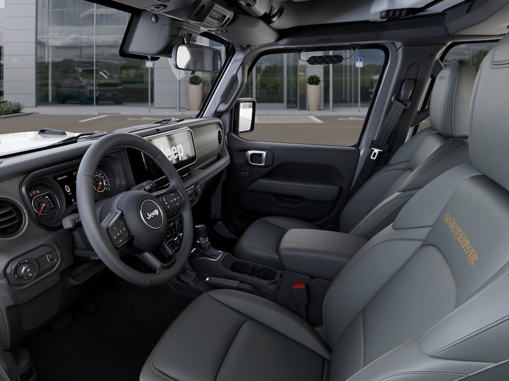 Convenience Group (Heated Front Seats, Heated Steering Wheel, Remote Start System, and Universal Garage Door Opener), Quick Order Package 24D Mojave, 110 Mph Vehicle Max Speed Calibration, 12.3" Touchscreen Display, 4-Wheel Disc Brakes, 4.10 Rear Axle Ratio, 4G LTE Wi-Fi Hot Spot, 8 Speakers, ABS brakes, Air Conditioning, Alexa Built-in, Alloy wheels, AM/FM radio: SiriusXM with 360L, Apple CarPlay, Apple CarPlay/Android Auto, Automatic temperature control, Black 3-Piece Hard Top, Brake assist, Compass, Connectivity - US/Canada, Delay-off headlights, Driver door bin, Driver vanity mirror, Dual front impact airbags, Dual front side impact airbags, Electronic Stability Control, Emergency communication system: Jeep Connect, For Details, Visit DriveUconnect.com, Freedom Panel Storage Bag, Front anti-roll bar, Front Bucket Seats, Front Center Armrest w/Storage, Front dual zone A/C, Front fog lights, Front License Plate Bracket, Front reading lights, Fully automatic headlights, Google Android Auto, Heated door mirrors, Heavy Duty Suspension with Gas Shocks, Illuminated entry, Integrated Center Stack Radio, Integrated roll-over protection, Low tire pressure warning, MOPAR All-Weather Slush Mats, MOPAR Spray in Bedliner, Occupant sensing airbag, Outside temperature display, Overhead airbag, Panic alarm, Passenger door bin, Passenger vanity mirror, Power door mirrors, Power steering, Power windows, Premium Cloth Seats with Sport Bolsters, Radio data system, Radio: Uconnect 5 with 12.3" Display, Rear anti-roll bar, Rear reading lights, Rear Sliding Window, Rear Window Defroster, Remote keyless entry, Security system, SiriusXM Radio Service, SiriusXM with 360L, Speed control, Split folding rear seat, Steering wheel mounted audio controls, Tachometer, Telescoping steering wheel, Tilt steering wheel, Traction control, Trip computer, USB Host Flip, Variably intermittent wipers, Voltmeter, and Wheels: 17" x 7.5" Dark Gray PainteD. Price may include: $1000 - 2026 National Retail Bonus Cash . Exp. 03/31/2026 $1,500 trade in allowance program for customers that own a 2018 or newer passenger car or truck with less than 80,000 miles and trade in their vehicle towards the purchase of a new vehicle. Some restrictions may apply. Contact dealer for details. ...Sale price includes a $2,000 conditional finance discount. To qualify, customer must finance or lease through Chrysler Capital. Factory-subsidized interest rate loans are not eligible. If customer does not finance or lease through Chrysler Capital, the $2,000 finance discount will not apply and sale price will increase by $2,000. Some restrictions may apply. See dealer for details.