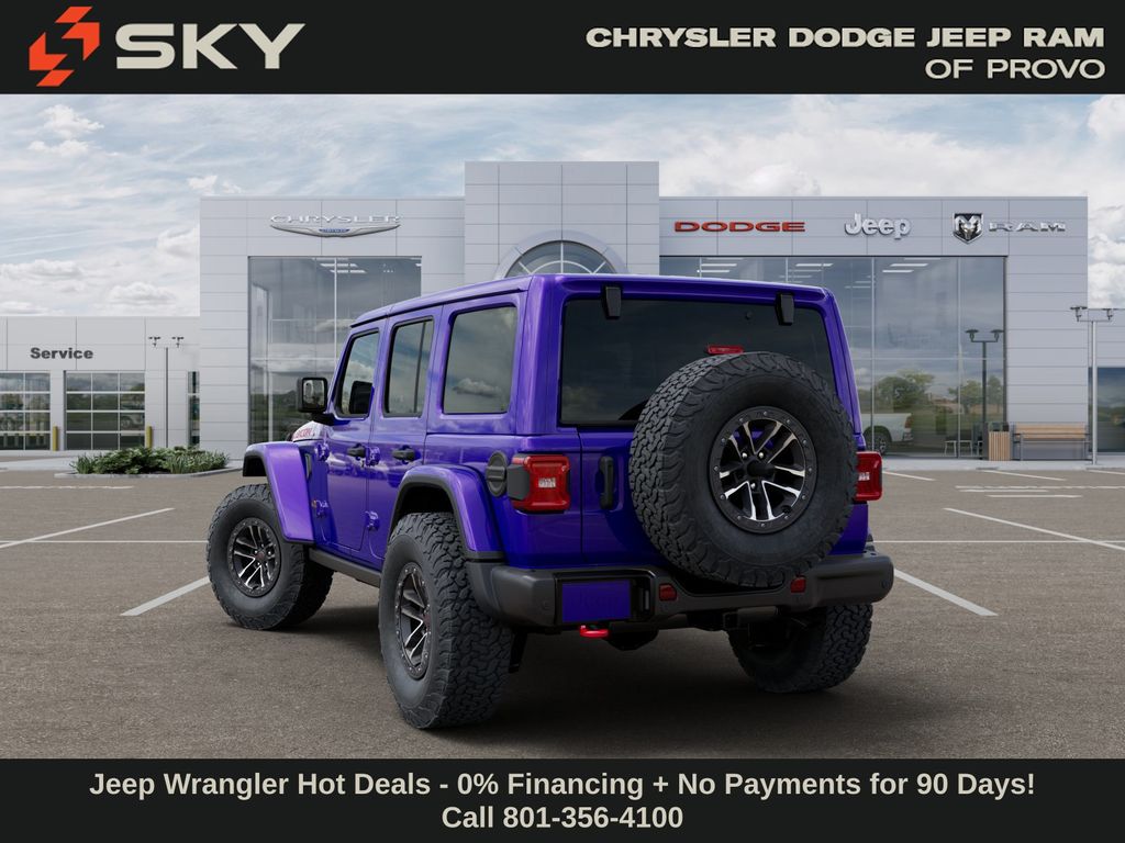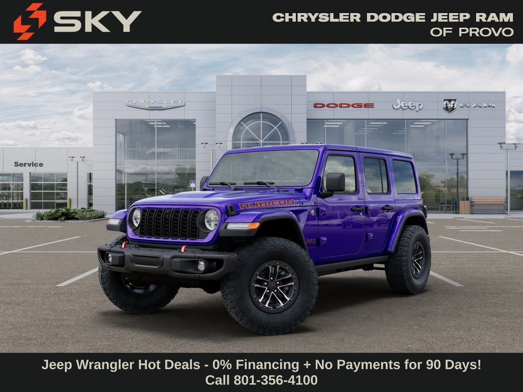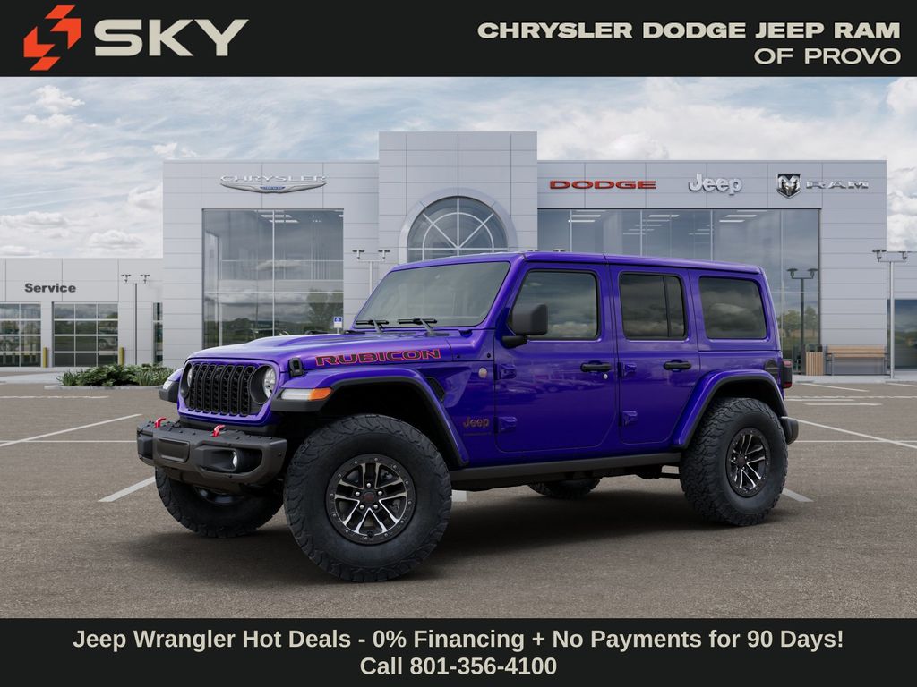 Quick Order Package 24Y Rubicon X (12.3" Touchscreen Display, 4G LTE Wi-Fi Hot Spot, Acoustic Front Seat Area Carpet, Acoustic Laminated Front Door Glass, Alpine Premium Audio System, Apple CarPlay, Auto High Beam Headlamp Control, Auto-Dimming Rear-View Mirror, Blind Spot and Cross Path Detection, Body Color 3-Piece Hard Top, Body Color Rubicon Highline Flare, Connected Travel and Traffic Services, Connectivity - US/Canada, Freedom Panel Storage Bag, Google Android Auto, HD Radio, Heated Front Seats, Heated Steering Wheel, Integrated Off-Road Camera, Integrated Voice Command with Bluetooth, Leather Wrapped Park Brake Handle, Leather Wrapped Shift Knob, MOPAR Hardtop Headliner, Nappa Leather Seats, No Soft Top, ParkSense Rear Park Assist System, Power 4-Way Driver Lumbar Adjust, Power 4-Way Passenger Lumbar Adjust, Power Adjust 8-Way Driver Seat, Power Adjust 8-Way Front Passenger Seat, Premium Door Trim Panel, Radio: Uconnect 5 Navigation with 12.3" Display, Rear Window Defroster, Rear Window Wiper/Washer, SiriusXM with 360L, Steel Front Bumper, Steel Rear Bumper, and Universal Garage Door Opener), Steel Performance Hood Package (Performance Hood), Trailer Tow and Auxiliary Switch Group (Auxiliary Switches and Class II Receiver Hitch), Trailer Tow Prep Package, 35" Tire Suspension, 4-Wheel Disc Brakes, 8 Speakers, ABS brakes, Air Conditioning, Alloy wheels, AM/FM radio: SiriusXM with 360L, Apple CarPlay/Android Auto, Automatic temperature control, Aux Battery, Brake assist, Cloth Low-Back Bucket Seats, Compass, Delay-off headlights, Driver door bin, Driver vanity mirror, Dual front impact airbags, Dual front side impact airbags, Electronic Stability Control, Emergency communication system: Jeep Connect, For More Info, Call 800-643-2112, Front anti-roll bar, Front Bucket Seats, Front Center Armrest w/Storage, Front dual zone A/C, Front fog lights, Front License Plate Bracket, Front reading lights, Fully automatic headlights, Heated door mirrors, Illuminated entry, Integrated Center Stack Radio, Integrated roll-over protection, Low tire pressure warning, MOPAR All-Weather Floor Mats, MOPAR Hinge-Gate Reinforcement, Non-Lock Fuel Cap Without Discriminator, Occupant sensing airbag, Outside temperature display, Overhead airbag, Panic alarm, ParkView Rear Back-Up Camera, Passenger door bin, Passenger vanity mirror, Performance Suspension, Power door mirrors, Power steering, Power windows, Radio data system, Radio: Uconnect 5 with 12.3" Display, Rear anti-roll bar, Rear reading lights, Remote keyless entry, Security system, SiriusXM Radio Service, Speed control, Split folding rear seat, Steering wheel mounted audio controls, Stop-Start Dual Battery System, Tachometer, Telescoping steering wheel, Tilt steering wheel, Traction control, Trip computer, Variably intermittent wipers, Voltmeter, Wheels: 1 Price may include: $1000 - 2026 National Retail Bonus Cash . Exp. 03/31/2026 $1,500 trade in allowance program for customers that own a 2018 or newer passenger car or truck with less than 80,000 miles and trade in their vehicle towards the purchase of a new vehicle. Some restrictions may apply. Contact dealer for details. ...Sale price includes a $2,000 conditional finance discount. To qualify, customer must finance or lease through Chrysler Capital. Factory-subsidized interest rate loans are not eligible. If customer does not finance or lease through Chrysler Capital, the $2,000 finance discount will not apply and sale price will increase by $2,000. Some restrictions may apply. See dealer for d