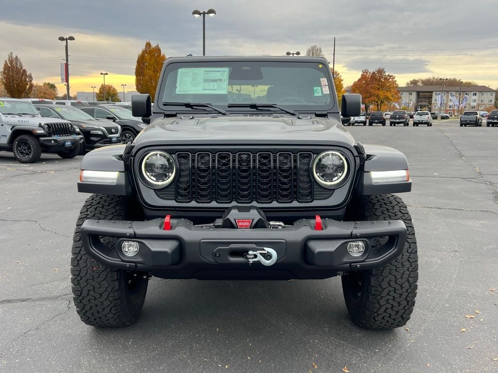 Quick Order Package 24Y Rubicon X (12.3" Touchscreen Display, 4G LTE Wi-Fi Hot Spot, Acoustic Front Seat Area Carpet, Acoustic Laminated Front Door Glass, Alpine Premium Audio System, Apple CarPlay, Auto High Beam Headlamp Control, Auto-Dimming Rear-View Mirror, Blind Spot and Cross Path Detection, Body Color 3-Piece Hard Top, Body Color Rubicon Highline Flare, Connected Travel and Traffic Services, Connectivity - US/Canada, Freedom Panel Storage Bag, Google Android Auto, HD Radio, Heated Front Seats, Heated Steering Wheel, Integrated Off-Road Camera, Integrated Voice Command with Bluetooth, Leather Wrapped Park Brake Handle, Leather Wrapped Shift Knob, MOPAR Hardtop Headliner, Nappa Leather Seats, ParkSense Rear Park Assist System, Power 4-Way Driver Lumbar Adjust, Power 4-Way Passenger Lumbar Adjust, Power Adjust 8-Way Driver Seat, Power Adjust 8-Way Front Passenger Seat, Premium Door Trim Panel, Radio: Uconnect 5 Navigation with 12.3" Display, Rear Window Defroster, Rear Window Wiper/Washer, SiriusXM with 360L, Steel Front Bumper, Steel Rear Bumper, and Universal Garage Door Opener), Trailer Tow and Auxiliary Switch Group (Auxiliary Switches and Class II Receiver Hitch), Trailer Tow Prep Package, 35" Tire Suspension, 4-Wheel Disc Brakes, 8 Speakers, ABS brakes, Air Conditioning, Alloy wheels, AM/FM radio: SiriusXM with 360L, Apple CarPlay/Android Auto, Automatic temperature control, Aux Battery, Brake assist, Cloth Low-Back Bucket Seats, Compass, Delay-off headlights, Driver door bin, Driver vanity mirror, Dual front impact airbags, Dual front side impact airbags, Electronic Stability Control, Emergency communication system: Jeep Connect, For More Info, Call 800-643-2112, Front anti-roll bar, Front Bucket Seats, Front Center Armrest w/Storage, Front dual zone A/C, Front fog lights, Front License Plate Bracket, Front reading lights, Fully automatic headlights, Heated door mirrors, Illuminated entry, Integrated Center Stack Radio, Integrated roll-over protection, Low tire pressure warning, MOPAR All-Weather Floor Mats, MOPAR Hinge-Gate Reinforcement, MOPAR Performance Satin Black Grille, Non-Lock Fuel Cap Without Discriminator, Occupant sensing airbag, Outside temperature display, Overhead airbag, Panic alarm, ParkView Rear Back-Up Camera, Passenger door bin, Passenger vanity mirror, Performance Suspension, Power door mirrors, Power steering, Power windows, Radio data system, Radio: Uconnect 5 with 12.3" Display, Rear anti-roll bar, Rear reading lights, Remote keyless entry, Security system, SiriusXM Radio Service, Speed control, Split folding rear seat, Steering wheel mounted audio controls, Stop-Start Dual Battery System, Tachometer, Telescoping steering wheel, Tilt steering wheel, Traction control, Trip computer, Variably intermittent wipers, Voltmeter, Warn Winch, Wheels: 17" x 7.5" Machined/Painted Black, and Wheels: 17" x 8" Machined with Black Pockets. ..$3,500 Select Inventory Bonus Cash May not be combined with some offers. Residency restrictions apply see dealer for details $1,500 trade in allowance program for customers that own a 2018 or newer passenger car or truck with less than 80,000 miles and trade in their vehicle towards the purchase of a new vehicle. Some restrictions may apply. Contact dealer for details. $1,500 Down Payment Assistance. Must Finance with CCAP. May not be combined with some factory incentives. Contact dealer for details.
