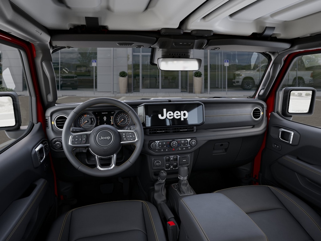 Quick Order Package 24G, Sahara Popular Equipment Group (12.3" Touchscreen Display, 4G LTE Wi-Fi Hot Spot, Alpine Premium Audio System, Apple CarPlay, Auto High Beam Headlamp Control, Auto-Dimming Rear-View Mirror, Blind Spot & Cross Path Detection, Connected Travel & Traffic Services, Connectivity - US/Canada, For More Info, Call 800-643-2112, Google Android Auto, GPS Navigation, Hard Seat Back, HD Radio, Integrated Center Stack Radio, Integrated Off-Road Camera, Integrated Voice Command w/Bluetooth, Leather Wrapped Park Brake Handle, Leather Wrapped Shift Knob, McKinley Trimmed Seats, ParkSense Rear Park Assist System, Power 4-Way Driver Lumbar Adjust, Power 4-Way Passenger Lumbar Adjust, Power Adjust 8-Way Driver Seat, Power Adjust 8-Way Front Passenger Seat, Radio: Uconnect 5 Nav w/12.3" Display, Side Steps, SiriusXM Radio Service, SiriusXM w/360L, and Universal Garage Door Opener), 3.45 Overall Top Gear Ratio, 4-Wheel Disc Brakes, 8 Speakers, ABS brakes, Air Conditioning, Alloy wheels, AM/FM radio: SiriusXM with 360L, Apple CarPlay/Android Auto, Automatic temperature control, Aux Battery, Body Color 3-Piece Hard Top, Brake assist, Cloth Low-Back Bucket Seats, Compass, Delay-off headlights, Driver door bin, Driver vanity mirror, Dual front impact airbags, Dual front side impact airbags, Electronic Stability Control, Emergency communication system: Jeep Connect, Freedom Panel Storage Bag, Front anti-roll bar, Front Bucket Seats, Front Center Armrest w/Storage, Front dual zone A/C, Front fog lights, Front License Plate Bracket, Front reading lights, Fully automatic headlights, Heated door mirrors, Heated front seats, Heated steering wheel, Heavy Duty Suspension w/Gas Shocks, Illuminated entry, Integrated roll-over protection, Low tire pressure warning, No Soft Top, Non-Lock Fuel Cap w/o Discriminator, Occupant sensing airbag, Outside temperature display, Overhead airbag, Panic alarm, ParkView Rear Back-Up Camera, Passenger door bin, Passenger vanity mirror, Power door mirrors, Power steering, Power windows, Radio data system, Radio: Uconnect 5 w/12.3" Display, Rear anti-roll bar, Rear reading lights, Rear Window Defroster, Rear Window Wiper/Washer, Remote keyless entry, Security system, Speed control, Split folding rear seat, Steering wheel mounted audio controls, Stop-Start Dual Battery System, Tachometer, Telescoping steering wheel, Tilt steering wheel, Traction control, Trip computer, Variably intermittent wipers, Voltmeter, and Wheels: 18" x 7.5" Machine/Painted Gray. Price may include: $1,500 trade in allowance program for customers that own a 2018 or newer passenger car or truck with less than 80,000 miles and trade in their vehicle towards the purchase of a new vehicle. Some restrictions may apply. Contact dealer for details. ...Sale price includes a $2,000 conditional finance discount. To qualify, customer must finance or lease through Chrysler Capital. Factory-subsidized interest rate loans are not eligible. If customer does not finance or lease through Chrysler Capital, the $2,000 finance discount will not apply and sale price will increase by $2,000. Some restrictions may apply. See dealer for details.