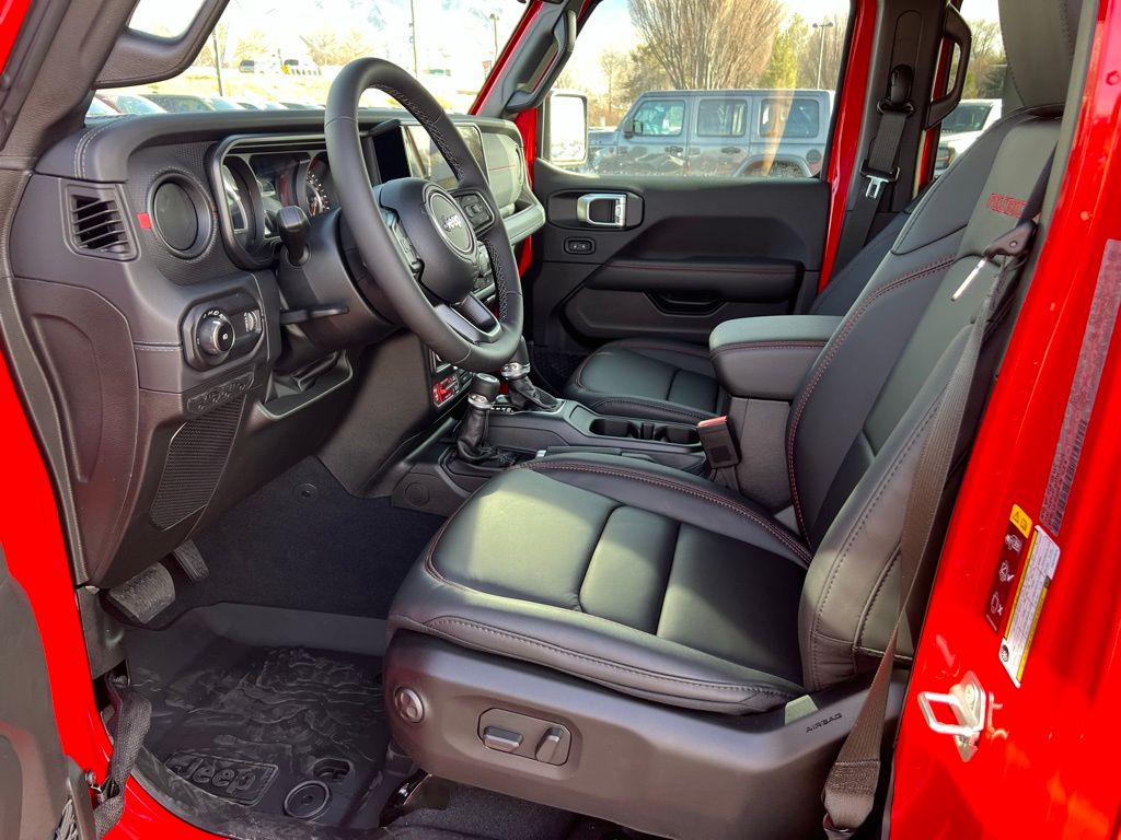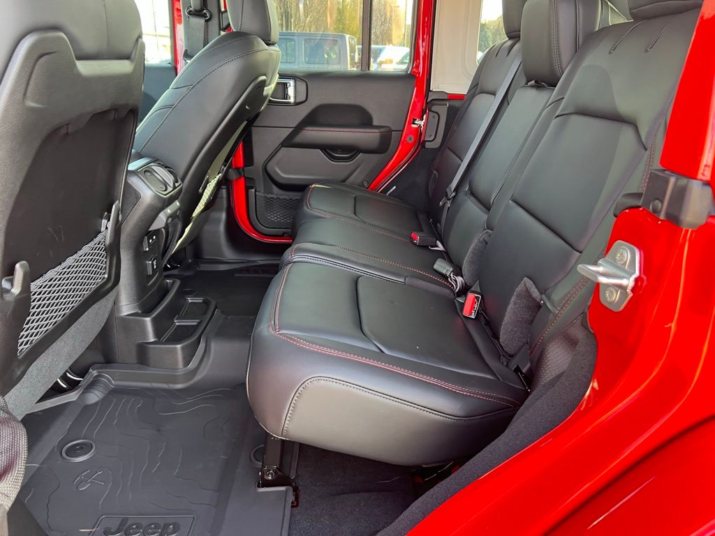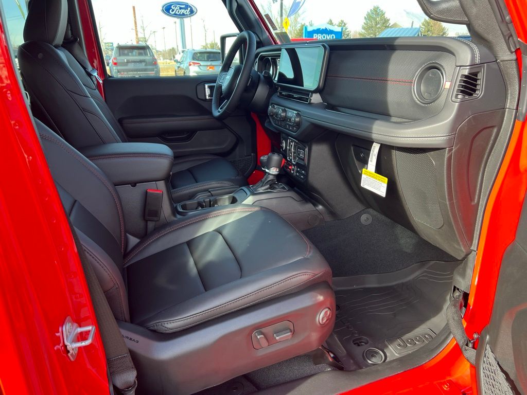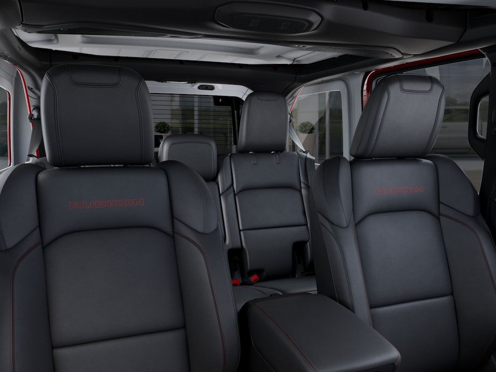 Convenience Group (Heated Front Seats, Heated Steering Wheel, and Universal Garage Door Opener), Quick Order Package 24R Rubicon, Safety Group (Auto High Beam Headlamp Control, Blind Spot and Cross Path Detection, and ParkSense Rear Park Assist System), Steel Performance Hood Package (Performance Hood), 12.3" Touchscreen Display, 4-Wheel Disc Brakes, 4.10 Rear Axle Ratio, 4G LTE Wi-Fi Hot Spot, 8 Speakers, ABS brakes, Air Conditioning, Alloy wheels, AM/FM radio: SiriusXM with 360L, Apple CarPlay, Apple CarPlay/Android Auto, Automatic temperature control, Aux Battery, Auxiliary Switches, Body Color 3-Piece Hard Top, Body Color Rubicon Highline Flare, Brake assist, Class II Receiver Hitch, Cloth Low-Back Bucket Seats, Compass, Connectivity - US/Canada, Delay-off headlights, Driver door bin, Driver vanity mirror, Dual front impact airbags, Dual front side impact airbags, Electronic Stability Control, Emergency communication system: Jeep Connect, For More Info, Call 800-643-2112, Freedom Panel Storage Bag, Front anti-roll bar, Front Bucket Seats, Front Center Armrest w/Storage, Front dual zone A/C, Front fog lights, Front License Plate Bracket, Front reading lights, Fully automatic headlights, Google Android Auto, Heated door mirrors, Illuminated entry, Integrated Center Stack Radio, Integrated roll-over protection, Low tire pressure warning, MOPAR All-Weather Floor Mats, No Soft Top, Non-Lock Fuel Cap Without Discriminator, Occupant sensing airbag, Outside temperature display, Overhead airbag, Panic alarm, ParkView Rear Back-Up Camera, Passenger door bin, Passenger vanity mirror, Performance Suspension, Power door mirrors, Power steering, Power windows, Radio data system, Radio: Uconnect 5 with 12.3" Display, Rear anti-roll bar, Rear reading lights, Rear Window Defroster, Rear Window Wiper/Washer, Remote keyless entry, Security system, SiriusXM Radio Service, SiriusXM with 360L, Speed control, Split folding rear seat, Steering wheel mounted audio controls, Stop-Start Dual Battery System, Tachometer, Telescoping steering wheel, Tilt steering wheel, Traction control, Trip computer, Variably intermittent wipers, Voltmeter, and Wheels: 17" x 7.5" Machined/Painted Black. $1,500 trade in allowance program for customers that own a 2018 or newer passenger car or truck with less than 80,000 miles and trade in their vehicle towards the purchase of a new vehicle. Some restrictions may apply. Contact dealer for details. ...Sale price includes a $2,000 conditional finance discount. To qualify, customer must finance or lease through Chrysler Capital. Factory-subsidized interest rate loans are not eligible. If customer does not finance or lease through Chrysler Capital, the $2,000 finance discount will not apply and sale price will increase by $2,000. Some restrictions may apply. See dealer for details.