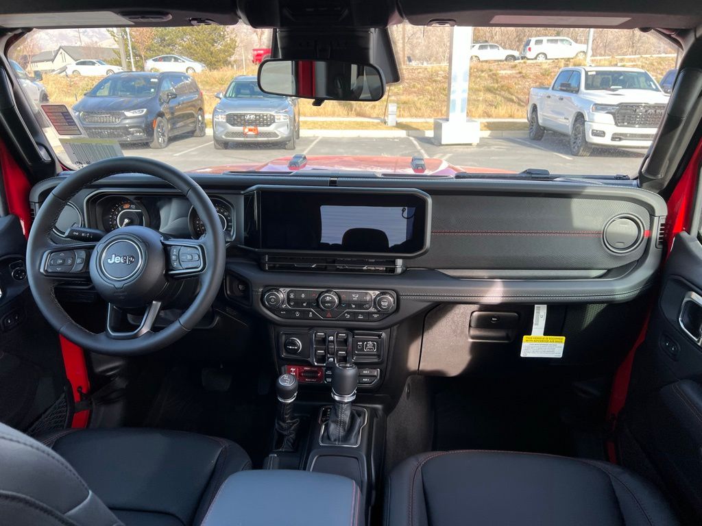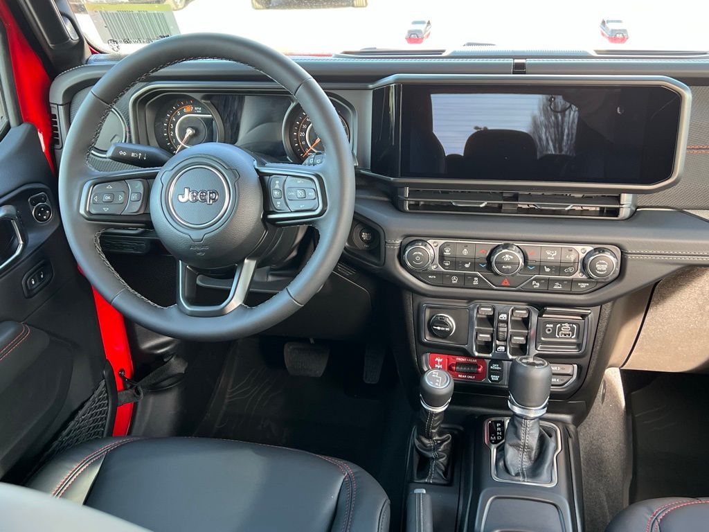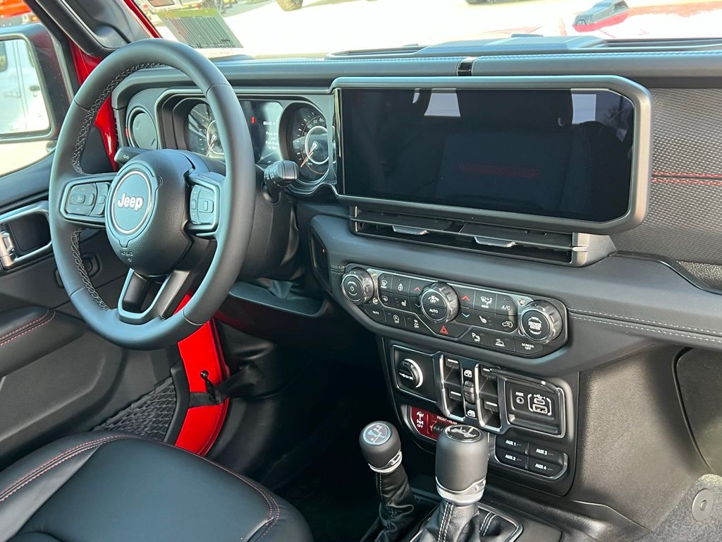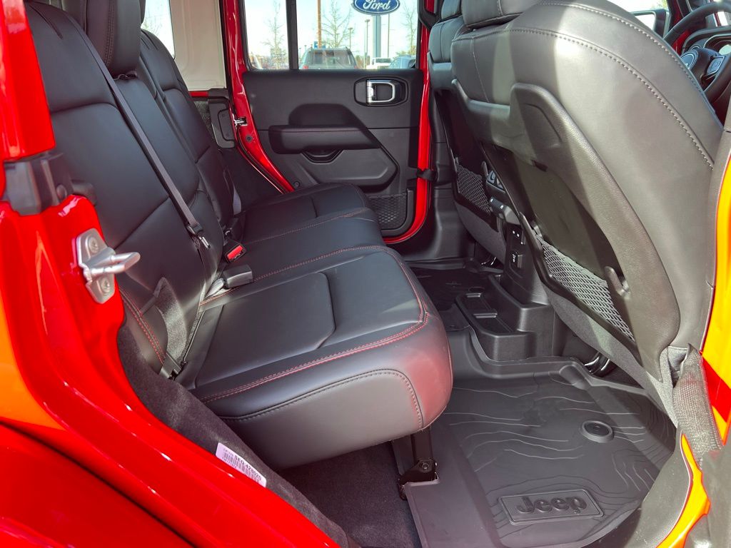 Convenience Group (Heated Front Seats, Heated Steering Wheel, and Universal Garage Door Opener), Quick Order Package 24R Rubicon, Safety Group (Auto High Beam Headlamp Control, Blind Spot and Cross Path Detection, and ParkSense Rear Park Assist System), Steel Performance Hood Package (Performance Hood), 12.3" Touchscreen Display, 4-Wheel Disc Brakes, 4.10 Rear Axle Ratio, 4G LTE Wi-Fi Hot Spot, 8 Speakers, ABS brakes, Air Conditioning, Alloy wheels, AM/FM radio: SiriusXM with 360L, Apple CarPlay, Apple CarPlay/Android Auto, Automatic temperature control, Aux Battery, Auxiliary Switches, Body Color 3-Piece Hard Top, Body Color Rubicon Highline Flare, Brake assist, Class II Receiver Hitch, Cloth Low-Back Bucket Seats, Compass, Connectivity - US/Canada, Delay-off headlights, Driver door bin, Driver vanity mirror, Dual front impact airbags, Dual front side impact airbags, Electronic Stability Control, Emergency communication system: Jeep Connect, For More Info, Call 800-643-2112, Freedom Panel Storage Bag, Front anti-roll bar, Front Bucket Seats, Front Center Armrest w/Storage, Front dual zone A/C, Front fog lights, Front License Plate Bracket, Front reading lights, Fully automatic headlights, Google Android Auto, Heated door mirrors, Illuminated entry, Integrated Center Stack Radio, Integrated roll-over protection, Low tire pressure warning, MOPAR All-Weather Floor Mats, No Soft Top, Non-Lock Fuel Cap Without Discriminator, Occupant sensing airbag, Outside temperature display, Overhead airbag, Panic alarm, ParkView Rear Back-Up Camera, Passenger door bin, Passenger vanity mirror, Performance Suspension, Power door mirrors, Power steering, Power windows, Radio data system, Radio: Uconnect 5 with 12.3" Display, Rear anti-roll bar, Rear reading lights, Rear Window Defroster, Rear Window Wiper/Washer, Remote keyless entry, Security system, SiriusXM Radio Service, SiriusXM with 360L, Speed control, Split folding rear seat, Steering wheel mounted audio controls, Stop-Start Dual Battery System, Tachometer, Telescoping steering wheel, Tilt steering wheel, Traction control, Trip computer, Variably intermittent wipers, Voltmeter, and Wheels: 17" x 7.5" Machined/Painted Black. $1,500 trade in allowance program for customers that own a 2018 or newer passenger car or truck with less than 80,000 miles and trade in their vehicle towards the purchase of a new vehicle. Some restrictions may apply. Contact dealer for details. ...Sale price includes a $2,000 conditional finance discount. To qualify, customer must finance or lease through Chrysler Capital. Factory-subsidized interest rate loans are not eligible. If customer does not finance or lease through Chrysler Capital, the $2,000 finance discount will not apply and sale price will increase by $2,000. Some restrictions may apply. See dealer for details.
