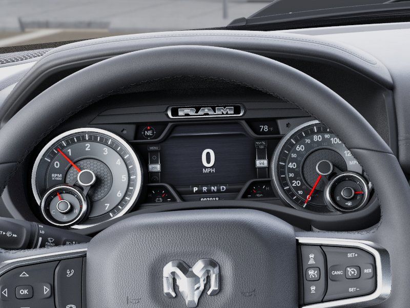 Laramie Level 1 Equipment Group (Rain Sensitive Windshield Wipers and Remote Tailgate Release), Night Edition (Accent Color Door Handles, Accent Color Premium Power Mirrors, Accent Color Tailgate Handle, Anti-Spin Differential Rear Axle, Auto Power-Folding Mirrors, Auto-Dimming Exterior Driver Mirror, Black Exterior Truck Badging, Black Headlamp Bezels, Black Interior Accents, Black Painted Exterior Mirrors Caps, Black Tail Lamp Bezels, Body Color Front Bumper, Body Color Rear Bumper with Step Pads, Convex Wide-Angle Exterior Mirror Insert, Dual Exhaust with Black Tips, Exterior Mirrors Approach Lamps, Exterior Mirrors Courtesy Lamps, Exterior Mirrors with Heating Element, Exterior Mirrors with Memory, Exterior Mirrors with Supplemental Signals, Grille Surround 3 Black Texture 2 Black, Pirelli Brand Tires, Proximity Approach/Departure Lamps, RAM Grille Badge - Black, Sport Performance Hood, and Wheels: 22" x 9" Forged Aluminum), Quick Order Package 27H Laramie, 10 Speakers, 4-Wheel Disc Brakes, 4G LTE Wi-Fi Hot Spot, ABS brakes, Active Noise Control System, Adjustable pedals, Air Conditioning, Alloy wheels, AM/FM radio: SiriusXM with 360L, Apple CarPlay/Android Auto, Audio memory, Auto High-beam Headlights, Auto-dimming door mirrors, Auto-dimming Rear-View mirror, Automatic temperature control, Brake assist, Bumpers: chrome, Chrome Exterior Mirrors, Compass, Connected Travel and Traffic Services, Connectivity - US/Canada, Delay-off headlights, Driver door bin, Driver vanity mirror, Dual front impact airbags, Dual front side impact airbags, Electronic Stability Control, Front anti-roll bar, Front Bucket Seats, Front Center Armrest w/Storage, Front dual zone A/C, Front fog lights, Front License Plate Bracket, Front reading lights, Front wheel independent suspension, Fully automatic headlights, Garage door transmitter, GPS Navigation, Heated door mirrors, Heated front seats, Heated rear seats, Heated steering wheel, Illuminated entry, Integrated Center Stack Radio, Integrated Voice Command with Bluetooth, Leather steering wheel, Leather Trimmed Bucket Seats, Low tire pressure warning, Memory seat, MOPAR Front and Rear Rubber Floor Mats, Navigation System, Occupant sensing airbag, Off-Road Information Pages, Outside temperature display, Overhead airbag, Overhead console, Panic alarm, ParkView Rear Back-Up Camera, Passenger door bin, Passenger vanity mirror, Pedal memory, Power door mirrors, Power driver seat, Power passenger seat, Power steering, Power windows, Radio data system, Radio: Uconnect 5 Navigation with 12.0" Display, RAM Grille Badge - Chrome, Rear anti-roll bar, Rear reading lights, Rear seat center armrest, Rear step bumper, Rear Wheelhouse Liners, Remote keyles Price may include: $1000 - 2026 National Bonus Cash . Exp. 03/02/2026 $3500 - 2026 National Retail Consumer Cash . Exp. 03/02/2026 $1,500 trade in allowance program for customers that own a 2018 or newer passenger car or truck with less than 80,000 miles and trade in their vehicle towards the purchase of a new vehicle. Some restrictions may apply. Contact dealer for details. ...Sale price includes a $2,500 conditional Ram finance discount. To qualify, customer must finance or lease through Chrysler Capital. Factory-subsidized interest rate loans are not eligible. If customer does not finance or lease through Chrysler Capital, the $2,500 finance discount will not apply and sale price will increase by $2,500. Some restrictions may apply. See dealer for d