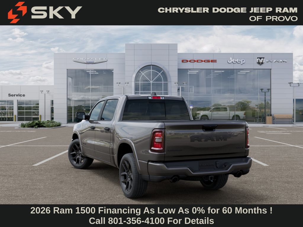 Laramie Level 1 Equipment Group (Rain Sensitive Windshield Wipers and Remote Tailgate Release), Night Edition (Accent Color Door Handles, Accent Color Premium Power Mirrors, Accent Color Tailgate Handle, Anti-Spin Differential Rear Axle, Auto Power-Folding Mirrors, Auto-Dimming Exterior Driver Mirror, Black Exterior Truck Badging, Black Headlamp Bezels, Black Interior Accents, Black Painted Exterior Mirrors Caps, Black Tail Lamp Bezels, Body Color Front Bumper, Body Color Rear Bumper with Step Pads, Convex Wide-Angle Exterior Mirror Insert, Dual Exhaust with Black Tips, Exterior Mirrors Approach Lamps, Exterior Mirrors Courtesy Lamps, Exterior Mirrors with Heating Element, Exterior Mirrors with Memory, Exterior Mirrors with Supplemental Signals, Grille Surround 3 Black Texture 2 Black, Pirelli Brand Tires, Proximity Approach/Departure Lamps, RAM Grille Badge - Black, Sport Performance Hood, and Wheels: 22" x 9" Forged Aluminum), Quick Order Package 27H Laramie, 10 Speakers, 4-Wheel Disc Brakes, 4G LTE Wi-Fi Hot Spot, ABS brakes, Active Noise Control System, Adjustable pedals, Air Conditioning, Alloy wheels, AM/FM radio: SiriusXM with 360L, Apple CarPlay/Android Auto, Audio memory, Auto High-beam Headlights, Auto-dimming door mirrors, Auto-dimming Rear-View mirror, Automatic temperature control, Brake assist, Bumpers: chrome, Chrome Exterior Mirrors, Compass, Connected Travel and Traffic Services, Connectivity - US/Canada, Delay-off headlights, Driver door bin, Driver vanity mirror, Dual front impact airbags, Dual front side impact airbags, Electronic Stability Control, Front anti-roll bar, Front Bucket Seats, Front Center Armrest w/Storage, Front dual zone A/C, Front fog lights, Front License Plate Bracket, Front reading lights, Front wheel independent suspension, Fully automatic headlights, Garage door transmitter, GPS Navigation, Heated door mirrors, Heated front seats, Heated rear seats, Heated steering wheel, Illuminated entry, Integrated Center Stack Radio, Integrated Voice Command with Bluetooth, Leather steering wheel, Leather Trimmed Bucket Seats, Low tire pressure warning, Memory seat, MOPAR Front and Rear Rubber Floor Mats, Navigation System, Occupant sensing airbag, Off-Road Information Pages, Outside temperature display, Overhead airbag, Overhead console, Panic alarm, ParkView Rear Back-Up Camera, Passenger door bin, Passenger vanity mirror, Pedal memory, Power door mirrors, Power driver seat, Power passenger seat, Power steering, Power windows, Radio data system, Radio: Uconnect 5 Navigation with 12.0" Display, RAM Grille Badge - Chrome, Rear anti-roll bar, Rear reading lights, Rear seat center armrest, Rear step bumper, Rear Wheelhouse Liners, Remote keyless e Price may include: $1000 - 2026 National Bonus Cash . Exp. 03/31/2026 $3500 - 2026 National Retail Bonus Cash . Exp. 03/31/2026 $1,500 trade in allowance program for customers that own a 2018 or newer passenger car or truck with less than 80,000 miles and trade in their vehicle towards the purchase of a new vehicle. Some restrictions may apply. Contact dealer for details. ...Sale price includes a $2,500 conditional Ram finance discount. To qualify, customer must finance or lease through Chrysler Capital. Factory-subsidized interest rate loans are not eligible. If customer does not finance or lease through Chrysler Capital, the $2,500 finance discount will not apply and sale price will increase by $2,500. Some restrictions may apply. See dealer for d