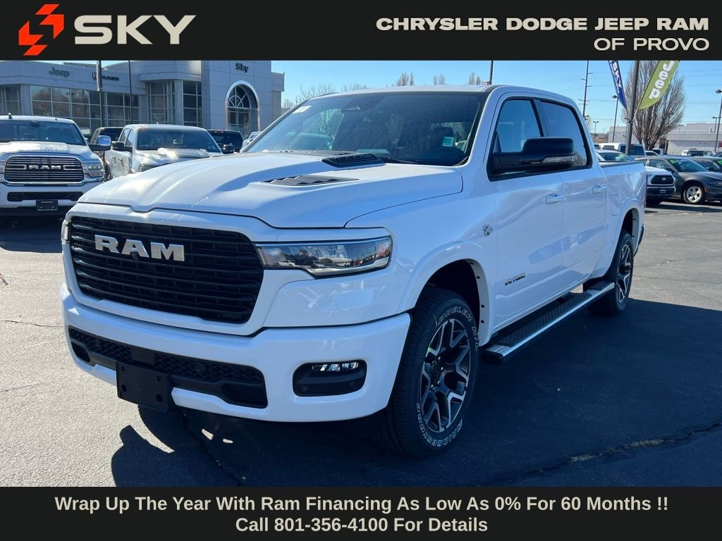 Laramie Level 2 Equipment Group (14.4" Touchscreen Display, 4G LTE Wi-Fi Hot Spot, Cluster 12" TFT Color Display, Connected Travel and Traffic Services, Connectivity - US/Canada, Front Passenger Interactive Display, GPS Navigation, Harman/Kardon 19 Speaker Premium Sound, Integrated Center Stack Radio, Integrated Voice Command with Bluetooth, Power Tailgate, Radio: Uconnect 5 Nav with 14.4" Display, Rain Sensitive Windshield Wipers, SiriusXM Radio Service, SiriusXM with 360L, and USB Host Flip), Quick Order Package 27H Laramie, Sport Appearance Package (Accent Color Premium Power Mirrors, Auto Power-Folding Mirrors, Auto-Dimming Exterior Driver Mirror, Black Interior Accents, Black Painted Exterior Mirrors Caps, Body Color Front Bumper, Body Color Rear Bumper with Step Pads, Bridgestone Brand Tires, Convex Wide-Angle Exterior Mirror Insert, Exterior Mirrors Courtesy Lamps, Exterior Mirrors with Heating Element, Exterior Mirrors with Memory, Exterior Mirrors with Supplemental Signals, Grille Surround 3 Body Color Tex 2 Black, RAM Grille Badge - Chrome, and Sport Performance Hood), 10 Speakers, 33 Gallon Fuel Tank, 4-Wheel Disc Brakes, ABS brakes, Active Noise Control System, Air Conditioning, Alloy wheels, AM/FM radio: SiriusXM with 360L, Apple CarPlay/Android Auto, Audio memory, Auto High-beam Headlights, Auto-dimming door mirrors, Auto-dimming Rear-View mirror, Automatic temperature control, Brake assist, Bumpers: chrome, Chrome Exterior Mirrors, Compass, Delay-off headlights, Driver door bin, Driver vanity mirror, Dual front impact airbags, Dual front side impact airbags, Electronic Stability Control, Front anti-roll bar, Front Bucket Seats, Front Center Armrest w/Storage, Front dual zone A/C, Front fog lights, Front License Plate Bracket, Front reading lights, Front wheel independent suspension, Fully automatic headlights, Garage door transmitter, Heated door mirrors, Heated front seats, Heated rear seats, Heated steering wheel, Illuminated entry, Leather steering wheel, Leather Trimmed Bucket Seats, Low tire pressure warning, Memory seat, MOPAR Front and Rear Rubber Floor Mats, Navigation System, Occupant sensing airbag, Off-Road Information Pages, Outside temperature display, Overhead airbag, Overhead console, Panic alarm, ParkView Rear Back-Up Camera, Passenger door bin, Passenger vanity mirror, Power door mirrors, Power driver seat, Power passenger seat, Power steering, Power windows, Radio data system, Radio: Uconnect 5 Navigation with 12.0" Display, Rear anti-roll bar, Rear reading lights, Rear seat center armrest, Rear step bumper, Rear Wheelhouse Liners, Remote keyless entry, Security system, Speed control, Split folding rear seat, Steering wheel mounted audio controls, Tachometer, Telescoping steering wheel, Tilt steering wheel, Traction control, Trailer Brake Control, Trip computer, Turn signal indicator mirrors, Variably intermittent wipers, Ventilated front seats, Voltmeter, Wheel to Wheel Side Steps, and Wheels: 20" x 9" Premium Paint/Polish. Price may include: $3500 - 2026 National Retail Consumer Cash . Exp. 01/05/2026 $1,500 trade in allowance program for customers that own a 2018 or newer passenger car or truck with less than 80,000 miles and trade in their vehicle towards the purchase of a new vehicle. Some restrictions may apply. Contact dealer for details. $2,000 Down Payment Assistance. Must Finance with CCAP. May not be combined with some factory incentives. Contact dealer for details.