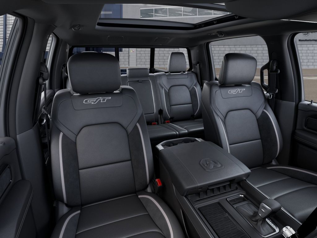 Bed Utility Group (Exterior 115V AC Outlet, MOPAR 4 Adjustable Cargo Tie-Down Hooks, and MOPAR Spray in Bedliner), G/T Package (4 Way Front Headrests, Bucket Seats, Driver Seat Memory, Floor Console, Front Seat Back Map Pockets, G/T Decal, G/T Exhaust, GT Interior Theme, Heated Front Seats, Heated Second Row Seats, Heated Steering Wheel, Leather Wrapped Shift Knob, Leather-Wrapped Steering Wheel, Leather/Vinyl Bucket Seats, MOPAR Bright Pedal Kit, Performance Pages, Power 4-Way Driver Lumbar Adjust, Power 4-Way Passenger Lumbar Adjust, Power Adjust 8-Way Driver Seat, Power Adjust 8-Way Front Passenger Seat, Rear 60/40 Folding Split Recline Seat, Steering Wheel Mounted Shift Control, Under Seat Lighting, and Ventilated Front Seats), Quick Order Package 21W Rebel, Rebel Level 2 Equipment Group (115V Auxiliary Rear Power Outlet, 14.4" Touchscreen Display, 2-Door Passive Entry, Front Door Locks, 4G LTE Wi-Fi Hot Spot, Accent Color Door Handles, Accent Color Premium Power Mirrors, Accent Color Tailgate Handle, Apple CarPlay, Auto Power-Folding Mirrors, Auto-Dimming Exterior Driver Mirror, Black Painted Exterior Mirrors Caps, Connected Travel and Traffic Services, Connectivity - US/Canada, Convex Wide-Angle Exterior Mirror Insert, Disassociated Touchscreen Display, Dual Wireless Charging Pad, Exterior Mirrors Approach Lamps, Exterior Mirrors Courtesy Lamps, Exterior Mirrors with Heating Element, Exterior Mirrors with Memory, Exterior Mirrors with Supplemental Signals, Front Passenger Interactive Display, Global Telematics Box Module, Google Android Auto, GPS Antenna Input, GPS Navigation, Harman/Kardon 19 Speaker Premium Sound, HD Radio, Integrated Center Stack Radio, Integrated Voice Command with Bluetooth, Media Hub with 2 Charge Only USBs, Off-Road Information Pages, Power 2-Way Passenger Lumbar Adjust, Power Adjustable Pedals with Memory, Power Tailgate, Proximity Approach/Departure Lamps, Radio: Uconnect 5 Nav with 14.4" Display, Radio/Driver Seat/Mirrors/Pedals Memory, Rain Sensitive Windshield Wipers, Rear Window Defroster, Security Alarm, SiriusXM Radio Service, SiriusXM with 360L, Smartphone as a Key Capable, and USB Host Flip), Technology Group (12-Way/1-Way Trailer Connector, Heads-Up Display, and LED CHMSL Lamp), 10 Speakers, 3.92 Rear Axle Ratio, 33 Gallon Fuel Tank, 4-Wheel Disc Brakes, ABS brakes, Active Noise Control System, Air Conditioning, Alloy wheels, AM/FM radio: SiriusXM with 360L, Apple CarPlay/Android Auto, Auto High-beam Headlights, Auto-dimming Rear-View mirror, Automatic temperature control, Black Exterior Mirrors, Brake assist, Cloth/Vinyl Bucket Seats, Compass, Delay-off headlights, Dome Dual LED Reading Lamp, Driver door bin, Driver vanity mirror, Dual front impact airbags, Dual front side impact airbags, Dual-Pane Panoramic Sunroof, Electronic Stability Control, Front anti-roll bar, Front Bucket Seats, Front Center Armrest w/Storage, Front dual zone A/C, Front fog lights, Front License Plate Bracket, Front reading lights, Front wheel independent suspension, Full Length Upgraded Floor Console, Fully automatic headlights, Garage door transmitter, Heated door mirrors, Heated front seats, Heated steering wheel, Illuminated entry, Leather steering wheel, Low tire pressure warning, Manual Folding Exterior Mirrors, Mopar Black Tubular Side Steps, Navigation System, Occupant sensing airbag, Outside temperature di Price may include: $1000 - 2026 National Bonus Cash . Exp. 03/02/2026 $3500 - 2026 National Retail Consumer Cash . Exp