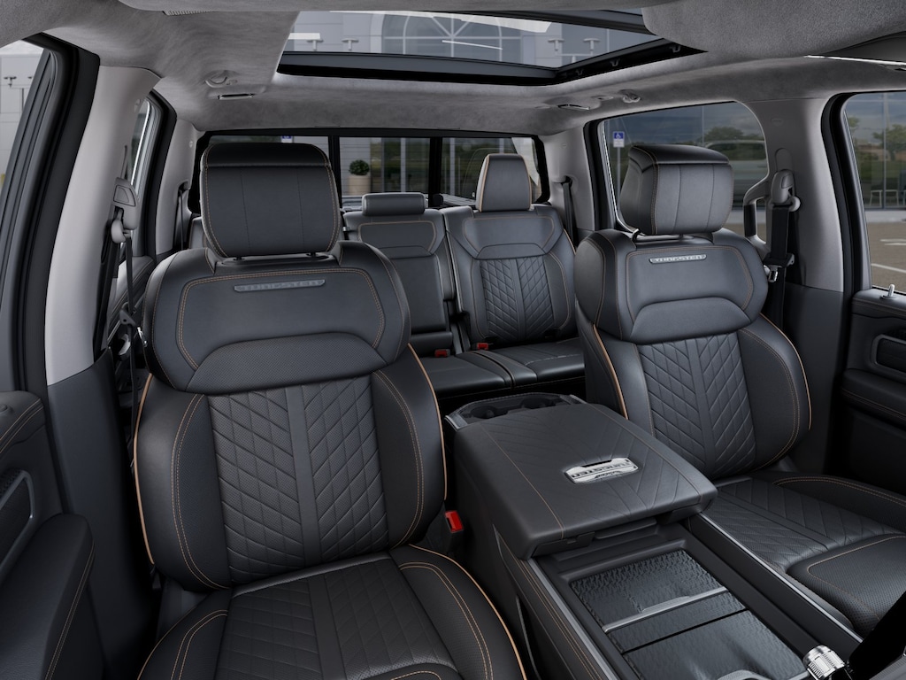 Quick Order Package 22V Tungsten, 12-Way/1-Way Trailer Connector, 3.92 Rear Axle Ratio, 4-Wheel Disc Brakes, ABS brakes, Adjustable pedals, Air Conditioning, Alloy wheels, AM/FM radio, Apple CarPlay/Android Auto, Audio memory, Auto High-beam Headlights, Auto Power-Folding Mirrors, Auto-dimming door mirrors, Auto-Dimming Exterior Driver Mirror, Auto-dimming Rear-View mirror, Auto-leveling suspension, Automatic temperature control, Bodyside moldings, Brake assist, Bumpers: body-color, Chrome Exterior Mirrors, Compass, Delay-off headlights, Driver door bin, Driver vanity mirror, Dual front impact airbags, Dual front side impact airbags, Electronic Stability Control, Exterior Mirrors Courtesy Lamps, Exterior Mirrors with Heating Element, Exterior Mirrors with Memory, Exterior Mirrors with Supplemental Signals, Exterior Parking Camera Rear, Front anti-roll bar, Front Bucket Seats, Front Center Armrest w/Storage, Front dual zone A/C, Front fog lights, Front License Plate Bracket, Front reading lights, Front wheel independent suspension, Fully automatic headlights, Garage door transmitter, Heads-Up Display, Heated door mirrors, Heated front seats, Heated rear seats, Heated steering wheel, Illuminated entry, Leather steering wheel, Low tire pressure warning, Memory seat, Navigation System, Occupant sensing airbag, Outside temperature display, Overhead airbag, Overhead console, Panic alarm, Passenger door bin, Passenger vanity mirror, Pedal memory, Power adjustable front head restraints, Power door mirrors, Power driver seat, Power moonroof, Power passenger seat, Power steering, Power windows, Premium Leather Bucket Seats, Radio data system, Radio: Uconnect 5 Nav with 14.4" Display, Rain sensing wipers, Rear anti-roll bar, Rear reading lights, Rear seat center armrest, Rear step bumper, Rear window defroster, Remote keyless entry, Security system, Speed control, Split folding rear seat, Steering wheel mounted audio controls, Tachometer, Telescoping steering wheel, Tilt steering wheel, Traction control, Trip computer, Turn signal indicator mirrors, Variably intermittent wipers, Ventilated front seats, Ventilated rear seats, Voltmeter, and Wheels: 22" x 9" Polish/Painted with Inserts. Price may include: $1000 - 2026 National Bonus Cash . Exp. 03/31/2026 $1,500 trade in allowance program for customers that own a 2018 or newer passenger car or truck with less than 80,000 miles and trade in their vehicle towards the purchase of a new vehicle. Some restrictions may apply. Contact dealer for details. ...Sale price includes a $2,500 conditional Ram finance discount. To qualify, customer must finance or lease through Chrysler Capital. Factory-subsidized interest rate loans are not eligible. If customer does not finance or lease through Chrysler Capital, the $2,500 finance discount will not apply and sale price will increase by $2,500. Some restrictions may apply. See dealer for details.