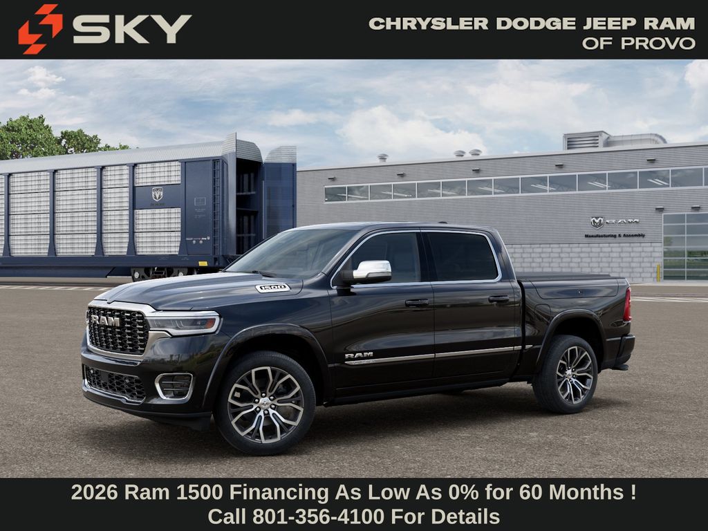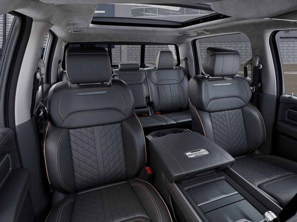 Bed Utility Group (Exterior 115V AC Outlet, MOPAR 4 Adjustable Cargo Tie-Down Hooks, and Truck Bed Cargo Divider), Quick Order Package 22V Tungsten, 12-Way/1-Way Trailer Connector, 3.92 Rear Axle Ratio, 4-Wheel Disc Brakes, ABS brakes, Adjustable pedals, Air Conditioning, Alloy wheels, AM/FM radio, Apple CarPlay/Android Auto, Audio memory, Auto High-beam Headlights, Auto Power-Folding Mirrors, Auto-dimming door mirrors, Auto-Dimming Exterior Driver Mirror, Auto-dimming Rear-View mirror, Auto-leveling suspension, Automatic temperature control, Bodyside moldings, Brake assist, Bumpers: body-color, Chrome Exterior Mirrors, Compass, Delay-off headlights, Driver door bin, Driver vanity mirror, Dual front impact airbags, Dual front side impact airbags, Electronic Stability Control, Exterior Mirrors Courtesy Lamps, Exterior Mirrors with Heating Element, Exterior Mirrors with Memory, Exterior Mirrors with Supplemental Signals, Exterior Parking Camera Rear, Front anti-roll bar, Front Bucket Seats, Front Center Armrest w/Storage, Front dual zone A/C, Front fog lights, Front License Plate Bracket, Front reading lights, Front wheel independent suspension, Fully automatic headlights, Garage door transmitter, Heads-Up Display, Heated door mirrors, Heated front seats, Heated rear seats, Heated steering wheel, Illuminated entry, Leather steering wheel, Low tire pressure warning, Memory seat, Navigation System, Occupant sensing airbag, Outside temperature display, Overhead airbag, Overhead console, Panic alarm, Passenger door bin, Passenger vanity mirror, Pedal memory, Power adjustable front head restraints, Power door mirrors, Power driver seat, Power moonroof, Power passenger seat, Power steering, Power windows, Premium Leather Bucket Seats, Radio data system, Radio: Uconnect 5 Nav with 14.4" Display, Rain sensing wipers, Rear anti-roll bar, Rear reading lights, Rear seat center armrest, Rear step bumper, Rear window defroster, Remote keyless entry, Security system, Speed control, Split folding rear seat, Steering wheel mounted audio controls, Tachometer, Telescoping steering wheel, Tilt steering wheel, Traction control, Trailer Brake Control, Trip computer, Turn signal indicator mirrors, Variably intermittent wipers, Ventilated front seats, Ventilated rear seats, Voltmeter, and Wheels: 22" x 9" Polish/Painted with Inserts. Price may include: $1000 - 2026 National Bonus Cash . Exp. 03/31/2026 $1,500 trade in allowance program for customers that own a 2018 or newer passenger car or truck with less than 80,000 miles and trade in their vehicle towards the purchase of a new vehicle. Some restrictions may apply. Contact dealer for details. ...Sale price includes a $2,500 conditional Ram finance discount. To qualify, customer must finance or lease through Chrysler Capital. Factory-subsidized interest rate loans are not eligible. If customer does not finance or lease through Chrysler Capital, the $2,500 finance discount will not apply and sale price will increase by $2,500. Some restrictions may apply. See dealer for details.