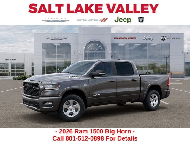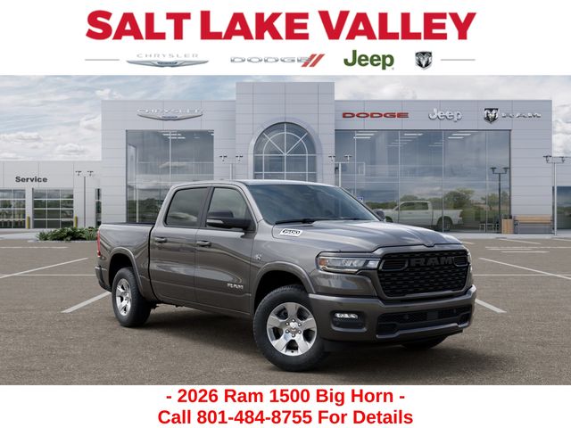 Get the job done and have fun doing it with the new Ram 1500 from Salt Lake Valley CDJR! Power, durability, and innovation come together in every Ram truck. Whether youâre working hard or exploring Utahâs backroads, the 1500 is built to handle it all. Call us today at 801-484-8755 to schedule a time to check it out! 2026 Ram 1500 Big Horn/Lone Star Granite Crystal Metallic Clearcoat HEMI 5.7L V8 Multi Displacement VVT eTorque