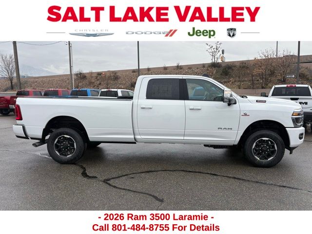 Get the job done and have fun doing it with the new Ram 3500 from Salt Lake Valley CDJR! Power, durability, and innovation come together in every Ram truck. Whether you’re working hard or exploring Utah’s backroads, the 3500 is built to handle it all. Call us today at 801-484-8755 to schedule a time to check it out! 2026 Ram 3500 Laramie Bright White Clearcoat 6.7L I6