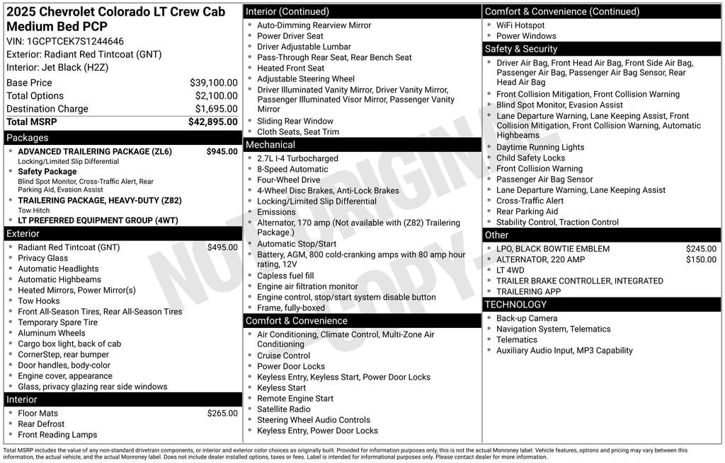 Radiant Red Tintcoat 2025 Chevrolet Colorado LT 4WD 8-Speed Automatic 2.7L I4 Turbocharged DOHC 16V LEV3-ULEV50 310hp 4WD.