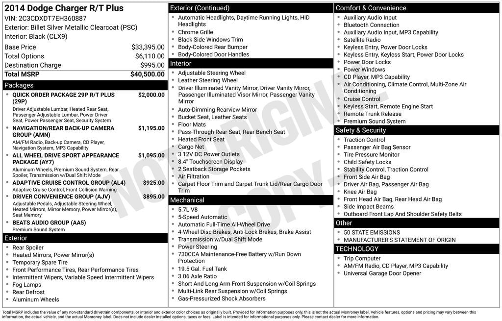 Billet Silver Metallic Clearcoat 2014 Dodge Charger R/T AWD 5-Speed Automatic HEMI 5.7L V8 Multi Displacement VVT AWD, Black Leather.Recent Arrival!Check out our 5 Star Google Reviews! Drive a little save a lot. Sale Price Includes $1,000 Finance Savings. Contact Dealer For Details.