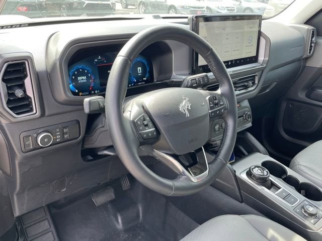 I got a 2025 Big Bend with the black diamond off road package. The steel modular front and rear in combination with bush guard gives this year model. A very aggressive off road look. With the ability to easily mount accessories and power them with the factory installed auxiliary switches. Hitch receiver seamlessly mounted into the rear steel bumper flanked by some very chunky recovery points. The upgraded aluminum rims wrapped with Continental all-terrains. It make this the most capable bronco sport yet. The interior of the 2025 has been updated with a new 13 inch touchscreen with Android Auto and apple car play. The lines of the dash flow elegantly from the new infotainment screen to the new all digital 12 inch gauge chaster. Toggling through the different modes on the gauge chaster is very intuitive, and all the displays are laid out very cleanly. Moving from gauge chaster the center storage cubby just below the infotainment screen there is a wireless charger and USB/ USB-c ports. The passenger side of that same cubby gets a handle and a matching one on the roof just in case the driver bucks a little too much. The passenger also gets a mesh storage area. That leads us to the fact this vehicle has tons of storage options all throughout. You have pockets on the sides of the front two seat big enough for the latest new phones. Very generous door storage on all four doors plus huge glove box and center console with 12 volt outlet. The back side of the center console has air vents and another 12 volt outlet plus a 110 outlet. Now getting to the cargo area it is massive for a crossover SUV. With off road package you get a cargo management system and a very nice rubber mat. Under that there is a full size tire plus scissor jack and funnel to use with the capless filler system. On the liftgate there isa pair of very bright led lights turned on with a switch in the cargo area. This feature packed vehicle has tons awesome gadgets and hidden a little homages I spend all day just talk that. At the end of the day it is car. So how does it drive. It is wonderful, the steering and pedal response is beautiful. Rides very smooth and little to no road noise going down the highway. The active cruise control and co-pilot 360 have been very handy. The car literally drives itself most of the time. There is not enough good things I could same about this car. I love it and you pick one too. You will see what I mean. - 5.0