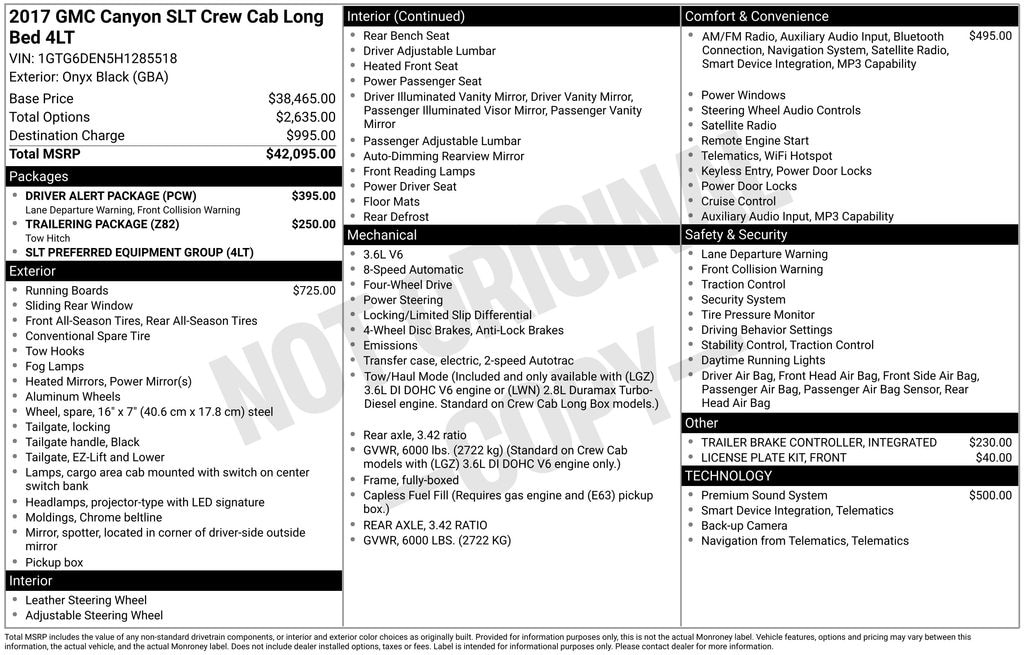 Onyx Black 2017 GMC Canyon SLT 4WD 8-Speed Automatic V6 4WD.