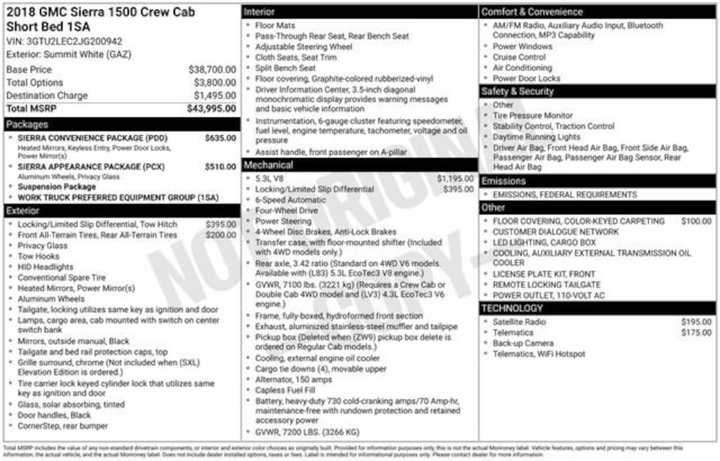 Take your drives to the next level with this GMC Sierra 1500 from Salt Lake Valley Buick GMC! Engineered for a smooth ride, advanced convenience, and lasting dependability, this vehicle is ready to handle everything your day throws at you. Plus, enjoy a $1,000 finance savings, already included in the sale price, when you finance through one of our trusted lending partners. Looking for quality used cars in Salt Lake City? This GMC Sierra 1500 delivers style, versatility, and value - perfect for daily commutes, family trips, or weekend adventures. Stop by Salt Lake Valley Buick GMC to see this vehicle in person and explore our wide selection of pre-owned cars, trucks, and SUVs. Browse online at www.slvbuickgmc.com or call 801-265-1511 to schedule your test drive today! With Preferred Equipment Group 1SA (150 Amp Alternator, 3.5 Diagonal Monochromatic Display DIC, Black Manual Outside Mirrors, Front Frame-Mounted Black Recovery Hooks, Graphite-Colored Rubberized-Vinyl Floor Covering, Rear 60/40 Folding Bench Seat (Folds Up), Single-Zone Air Conditioning, and Solar Absorbing Tinted Glass), Sierra Appearance Package (Deep-Tinted Glass and Wheels: 17 x 8 Bright Machined Aluminum), Sierra Convenience Package (110-Volt AC Power Outlet, Black Power Adjustable Heated Outside Mirrors, LED Cargo Box Lighting, Remote Keyless Entry, and Remote Locking Tailgate), Trailering Equipment (Heavy-Duty Rear Locking Differential), 4-Wheel Disc Brakes, 40/20/40 Front Split Bench Seat, 6 Speakers, 6-Speaker Audio System, 720 CCA/80 Amp-hr Maintenance Free HD Battery, ABS brakes, Air Conditioning, AM/FM radio, Auxiliary External Transmission Oil Cooler, Brake assist, Bumpers: chrome, Cloth Seat Trim, Color-Keyed Carpeting, Delay-off headlights, Driver door bin, Dual front impact airbags, Dual front side impact airbags, Electronic Stability Control, Exterior Parking Camera Rear, Front anti-roll bar, Front Center Armrest w/Storage, Front License Plate Kit, Front reading lights, Front wheel independent suspension, Fully automatic headlights, GMC 4G LTE, GMC Connected Access, Heavy Duty Suspension, High-Intensity Discharge Headlights, Low tire pressure warning, Occupant sensing airbag, OnStar & GMC Connected Services Capable, Overhead airbag, Overhead console, Passenger door bin, Passenger vanity mirror, Power steering, Power windows, Premium audio system: GMC Infotainment System, Radio data system, Radio: AM/FM/GMC Infotainment System, Rear reading lights, Rear seat center armrest, Rear step bumper, Rubberized-Vinyl Front Floor Mats, Rubberized-Vinyl Rear Floor Mats, SiriusXM Satellite Radio, Speed control, Speed-sensing steering, Split folding rear seat, Tachometer, Tilt steering wheel, Traction control, Trip computer, Variably intermittent wipers, Voltmeter, and Wheels: 17 x 8 Painted Steel designed for convenience and enjoyment, this GMC Sierra 1500 is ready to take you wherever you want to go.