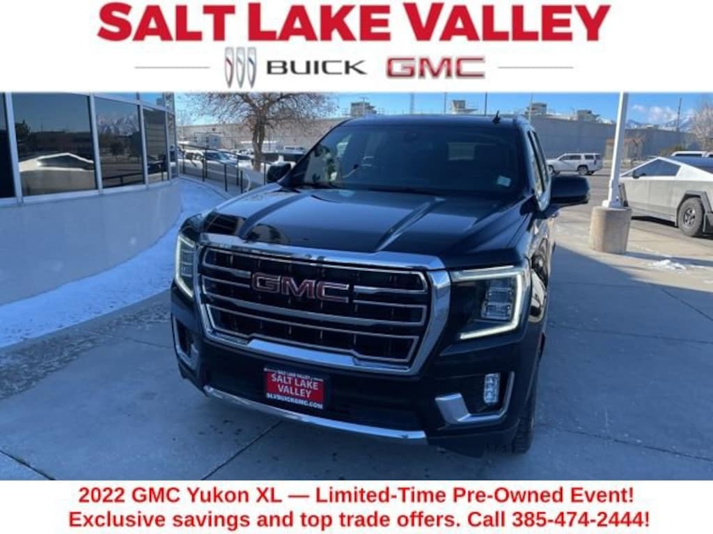 Take your drives to the next level with this GMC Yukon XL from Salt Lake Valley Buick GMC! Engineered for a smooth ride, advanced convenience, and lasting dependability, this vehicle is ready to handle everything your day throws at you. Plus, enjoy a $1,000 finance savings, already included in the sale price, when you finance through one of our trusted lending partners. Looking for quality used cars in Salt Lake City? This GMC Yukon XL delivers style, versatility, and value - perfect for daily commutes, family trips, or weekend adventures. Stop by Salt Lake Valley Buick GMC to see this vehicle in person and explore our wide selection of pre-owned cars, trucks, and SUVs. Browse online at www.slvbuickgmc.com or call 801-265-1511 to schedule your test drive today! With License Plate Front Mounting Package, Max Trailering Package, Preferred Equipment Group 4SA (2 Presets For Power Driver Seat, Automatic Stop/Start, Bose 9-Speaker Stereo Audio System Feature, Bright Chrome Bodyside Moldings, Bright Front & Rear Door Sill Plates, Chrome Door Handles w/Body-Color Strip, Hands-Free Power Programmable Rear Liftgate, Heated & Ventilated Driver & Front Passenger Seats, Heated Driver & Front Passenger Seats, Inside Rear-View Auto-Dimming Mirror, Safety Alert Seat, Start/Stop System Disable Button, Universal Home Remote, and Wireless Charging), SLT Luxury Package (2 Presets For Outside Rearview Mirrors, 3rd Row 60/40 Power-Folding Split-Bench Seat, HD Surround Vision, Heated 2nd Row Outboard Position Seats, Heated Steering Wheel, Outside Heated Power-Adjustable Mirrors, Power Release 2nd Row 60/40 Split-Folding Bench Seat, Power Tilt & Telescopic Steering Column, and Rear Pedestrian Alert), SLT Premium Package (Dual-Pane Panoramic Power Sunroof), 3.23 Rear Axle Ratio, 3rd row seats: split-bench, 4-Wheel Disc Brakes, 9 Speakers, ABS brakes, Air Conditioning, Alloy wheels, AM/FM radio: SiriusXM with 360L, AM/FM Stereo, Apple CarPlay/Android Auto, Auto High-beam Headlights, Auto-dimming Rear-View mirror, Automatic Emergency Braking, Automatic temperature control, Bodyside moldings, Brake assist, Bumpers: body-color, Compass, Delay-off headlights, Driver door bin, Driver vanity mirror, Dual front impact airbags, Dual front side impact airbags, Electronic Stability Control, Emergency communication system: OnStar and GMC Connected Services capable, Extra Capacity Cooling System, Floor Console, Following Distance Indicator, Forward Collision Alert, Four wheel independent suspension, Front & Rear Park Assist, Front anti-roll bar, Front Bucket Seats, Front Center Armrest, Front dual zone A/C, Front fog lights, Front Pedestrian Braking, Front reading lights, Fully automatic headlights, Garage door transmitter, Heated door mirrors, Heated front seats, Hitch Guidance w/Hitch View, Illuminated entry, Integrated Trailer Brake Controller, IntelliBeam Automatic High Beam On/Off, Lane Change Alert w/Side Blind Zone Alert, Lane Keep Assist w/Lane Departure Warning, Leather steering wheel, Low tire pressure warning, Memory seat, Molded Splash Guards, Navigation System, Not Equipped w/4-Way Driver & Fr Pass Pwr Lumbar, Not Equipped w/Steering Column Lock, Occupant sensing airbag, Outside temperature display, Overhead airbag, Overhead console, Panic alarm, Passenger door bin, Passenger vanity mirror, Perforated Leather-Appointed Seating, Power door mirrors, Power driver seat, Power Liftgate, Power passenger seat, Power Release 2nd Row Bucket Seats, Power steering, Power windows, Premium Smooth Ride Suspension, Rain sensing wipers, Rear air conditioning, Rear anti-roll bar, Rear Cross Traffic Alert, Rear reading lights, Rear seat center armrest, Rear Seat Media System (DISC), Rear window defroster, Rear window wiper, Remote keyless entry, Roof rack: rails only, Security system, SiriusXM w/360L, Smart Trailer Integration Indicator, Speed control, Speed-sensing steering, Split folding rear seat, Spoiler, Steering wheel mounted audio controls, Tachometer, Telescop