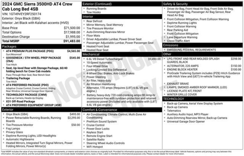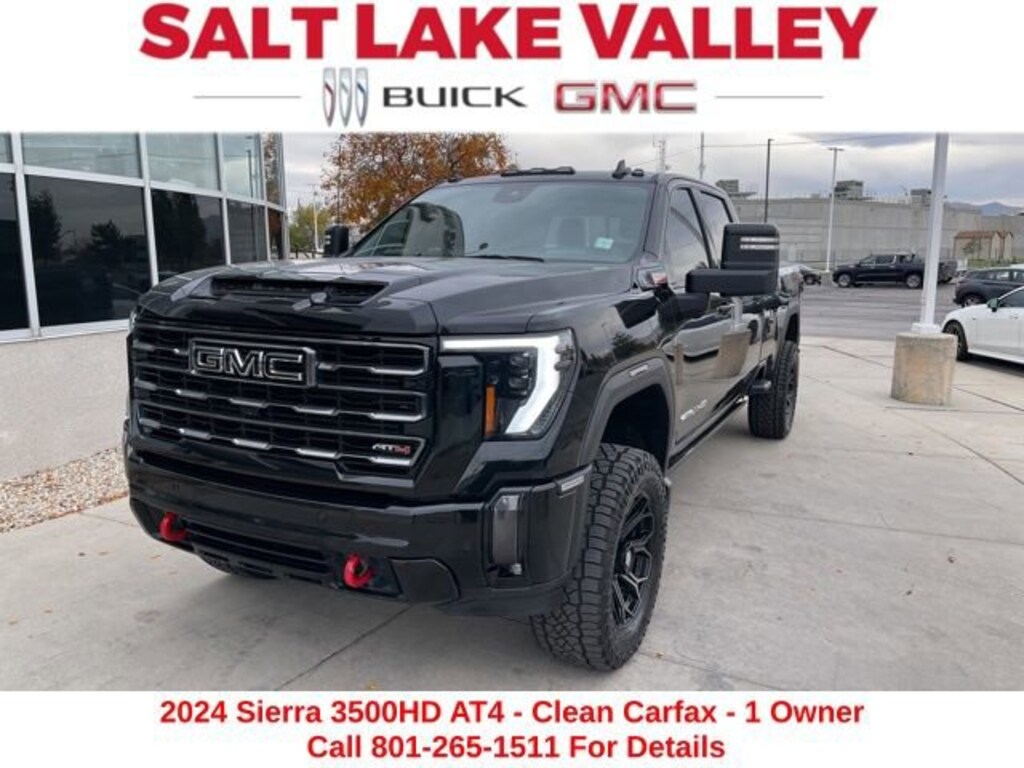 Take your drives to the next level with this GMC Sierra 3500HD from Salt Lake Valley Buick GMC! Engineered for a smooth ride, advanced convenience, and lasting dependability, this vehicle is ready to handle everything your day throws at you. Plus, enjoy a $1,000 finance savings, already included in the sale price, when you finance through one of our trusted lending partners. Looking for quality used cars in Salt Lake City? This GMC Sierra 3500HD delivers style, versatility, and value - perfect for daily commutes, family trips, or weekend adventures. Stop by Salt Lake Valley Buick GMC to see this vehicle in person and explore our wide selection of pre-owned cars, trucks, and SUVs. Browse online at www.slvbuickgmc.com or call 801-265-1511 to schedule your test drive today! With AT4 Preferred Package (Adaptive Cruise Control, LED Smoked Amber Roof Marker Lamps, Power Sliding Rear Window w/Defogger, and Universal Home Remote), AT4 Premium Plus Package (Off-Road High Clearance Step (LPO) and Power Sunroof), Gooseneck/5th Wheel Prep Package, Preferred Equipment Group 4SB (120-Volt Bed Mounted Power Outlet, 120-Volt Instrument Panel Power Outlet, 2 Charge-Only Rear USB Ports, 2 Charge/Data USB Ports Inside Center Console, 2 USB Ports, 2-Speed Active Transfer Case, Bed View Camera w/2 Trailer Camera Provisions, Bose Premium 7-Speaker Sound System, Deep-Tinted Glass, Electric Rear-Window Defogger, Floor-Mounted Center Console, Front Rain-Sensing Wipers, Gloss Black Header & Grille Insert Bars, HD Surround Vision, Heated 2nd Row Outboard Seats, Heated Driver & Front Outboard Passenger Seats, Integrated Trailer Brake Controller, Keyless Open & Start, LED Cargo Area Lighting, Manual Tilt-Wheel/Telescoping Steering Column, Power Front Windows w/Passenger Express Up/Down, Prem Front Floor Liners w/Removable Carpet Insert, Prem Rear Floor Liners w/Removable Carpet Insert, Push Button Start, Rear Cross Traffic Alert, Rear Wheelhouse Liners, Remote Vehicle Starter System, Safety Alert Seat, SiriusXM w/360L, Spray-On Pickup Bedliner w/AT4 Logo, Steering Wheel Audio Controls, Trailer Camera Provisions, Trailer Side Blind Zone Alert, Unauthorized Entry Theft-Deterrent System, Ventilated Driver & Front Passenger Seats, Wireless Charging, and Wireless Phone Projection), Technology Package (Auto-Dimming Inside Rearview Mirror w/Camera and Multicolor 15 Diagonal Head-Up Display), X31 Off-Road Package (Hill Descent Control), 10-Way Power Driver Seat Adjuster w/Lumbar, 10-Way Power Passenger Seat Adjuster w/Lumbar, 220 Amp Alternator, 4-Wheel Disc Brakes, 7 Speakers, ABS brakes, Air Conditioning, Alloy wheels, AM/FM radio: SiriusXM with 360L, Apple CarPlay/Android Auto, Auto High-beam Headlights, Auto-dimming door mirrors, Auto-dimming Rear-View mirror, Automatic Emergency Braking, Automatic temperature control, Black Front & Rear Molded Splash Guards (LPO), Black Power-Retractable Assist Steps, Brake assist, Buckle to Drive, Bumpers: body-color, Compass, Delay-off headlights, Driver door bin, Driver Memory, Driver vanity mirror, Dual front impact airbags, Dual front side impact airbags, Electronic Stability Control, Engine Block Heater, Exhaust Brake, Following Distance Indicator, Forward Collision Alert, Front anti-roll bar, Front Bucket Seats, Front Center Armrest, Front dual zone A/C, Front fog lights, Front License Plate Kit, Front Pedestrian Braking, Front reading lights, Front wheel independent suspension, Fully automatic headlights, GMC Premium 13.4 Diagonal Information Display, Heated door mirrors, Heated front seats, Heated rear seats, Heated steering wheel, Heavy-Duty 80 Amp-Hr Battery, Hitch Guidance w/Hitch View, Illuminated entry, IntelliBeam Automatic High Beam On/Off, Lane Departure Warning System, Low tire pressure warning, Memory seat, Occupant sensing airbag, Off-Road Suspension, Outside temperature display, Overhead airbag, Overhead console, Panic alarm, Passenger door bin, Passenger vanity mirror, Perforated Leather-Appointed Fro