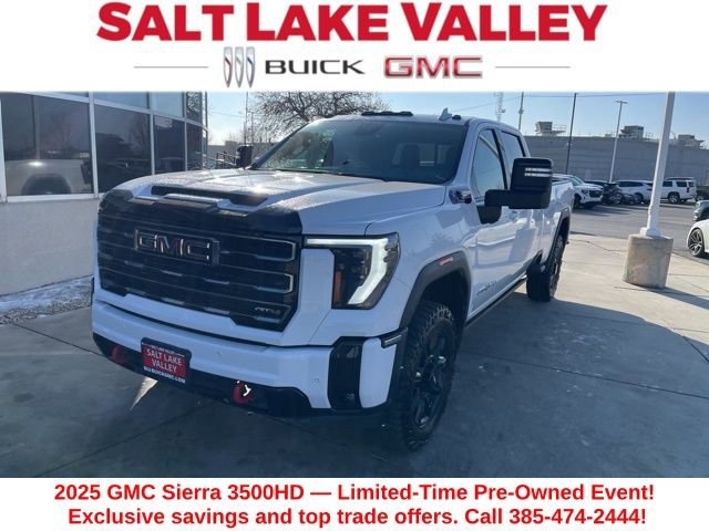 Take your drives to the next level with this GMC Sierra 3500HD from Salt Lake Valley Buick GMC! Engineered for a smooth ride, advanced convenience, and lasting dependability, this vehicle is ready to handle everything your day throws at you. Plus, enjoy a $1,000 finance savings, already included in the sale price, when you finance through one of our trusted lending partners. Looking for quality used cars in Salt Lake City? This GMC Sierra 3500HD delivers style, versatility, and value - perfect for daily commutes, family trips, or weekend adventures. Stop by Salt Lake Valley Buick GMC to see this vehicle in person and explore our wide selection of pre-owned cars, trucks, and SUVs. Browse online at www.slvbuickgmc.com or call 801-265-1511 to schedule your test drive today! With AT4 Preferred Package (LED Smoked Amber Roof Marker Lamps, Power Sliding Rear Window w/Defogger, and Universal Home Remote), AT4 Premium Plus Package (Off-Road High Clearance Step (LPO) and Power Sunroof), Gooseneck/5th Wheel Prep Package, Preferred Equipment Group 4SB (120-Volt Bed Mounted Power Outlet, 120-Volt Instrument Panel Power Outlet, 2 Charge-Only Rear USB Ports, 2 Charge/Data USB Ports Inside Center Console, 2 USB Ports, 2-Speed Active Transfer Case, Bed View Camera w/2 Trailer Camera Provisions, Bose Premium 7-Speaker Sound System, Deep-Tinted Glass, Electric Rear-Window Defogger, Floor-Mounted Center Console, Front Rain-Sensing Wipers, Gloss Black Header & Grille Insert Bars, HD Surround Vision, Heated 2nd Row Outboard Seats, Heated Driver & Front Outboard Passenger Seats, Keyless Open & Start, LED Cargo Area Lighting, Manual Tilt-Wheel/Telescoping Steering Column, Power Front Windows w/Passenger Express Up/Down, Prem Front Floor Liners w/Removable Carpet Insert, Prem Rear Floor Liners w/Removable Carpet Insert, Push Button Start, Rear Cross Traffic Alert, Rear Wheelhouse Liners, Remote Vehicle Starter System, Safety Alert Seat, SiriusXM w/360L Trial Subscription, Spray-On Pickup Bedliner w/GMC Logo, Steering Wheel Audio Controls, Trailer Camera Provisions, Trailer Side Blind Zone Alert, Ultrasonic Front & Rear Park Assist, Unauthorized Entry Theft-Deterrent System, Ventilated Driver & Front Passenger Seats, Wireless Charging, and Wireless Phone Projection), Snow Plow Prep/Camper Package (220 Amp Alternator), Technology Package (Auto-Dimming Inside Rearview Mirror w/Camera and Multicolor 15 Diagonal Head-Up Display), X31 Off-Road Package (Hill Descent Control), 10-Way Power Driver Seat Adjuster w/Lumbar, 10-Way Power Passenger Seat Adjuster w/Lumbar, 4-Wheel Disc Brakes, 7 Speakers, ABS brakes, Air Conditioning, Alloy wheels, AM/FM radio: SiriusXM with 360L, Auto High-beam Headlights, Auto-dimming door mirrors, Auto-dimming Rear-View mirror, Automatic Emergency Braking, Automatic temperature control, Black Power-Retractable Assist Steps, Brake assist, Buckle to Drive, Bumpers: body-color, Compass, Delay-off headlights, Driver door bin, Driver Memory, Driver vanity mirror, Dual front impact airbags, Dual front side impact airbags, Electronic Stability Control, Engine Block Heater, Exhaust Brake, Exterior Parking Camera Rear, Following Distance Indicator, Forward Collision Alert, Front anti-roll bar, Front Bucket Seats, Front Center Armrest, Front dual zone A/C, Front fog lights, Front License Plate Kit, Front Pedestrian Braking, Front reading lights, Front wheel independent suspension, Fully automatic headlights, GMC Premium 13.4 Diagonal Information Display, Heated door mirrors, Heated front seats, Heated rear seats, Heated steering wheel, Heavy-Duty 80 Amp-Hr Battery, High Idle Switch, Hitch Guidance w/Hitch View, Illuminated entry, IntelliBeam Automatic High Beam On/Off, Lane Departure Warning System, Low tire pressure warning, Memory seat, Occupant sensing airbag, Off-Road Suspension, Outside temperature display, Overhead airbag, Overhead console, Panic alarm, Passenger door bin, Passenger