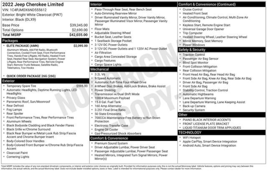 Turn every drive into something special with this Jeep Cherokee from Salt Lake Valley Chevrolet! Designed for comfort, performance, and style, this vehicle comes fully equipped with modern technology and convenience features youâll love. Plus, enjoy a $1,000 finance savings, already included in the sale price, when you finance through one of our trusted lending partners. If youâre shopping for used cars in Salt Lake City, or searching for the perfect SUV, truck, or sedan, this Jeep Cherokee delivers the dependability and value youâre looking for. Itâs the ideal match for your lifestyle - ready for everything from mountain adventures to city commutes. Visit Salt Lake Valley Chevrolet today and see why so many Utah drivers trust us for great deals on quality pre-owned vehicles. Explore our inventory online at www.slvchevy.com or call 801-969-8221 to schedule your test drive today! This impressive vehicle includes Elite Package (1-Year SiriusXM Guardian Trial, 4G LTE Wi-Fi Hot Spot, 5-Year SiriusXM Traffic Service, 5-Year SiriusXM Travel Link Service, 8.4 Touchscreen Display, Apple CarPlay, Carpeted Cargo Area Trim Panels, Chrome Tow Hooks, For Details, Visit DriveUconnect.com, For More Info, Call 800-643-2112, Fore/Aft Adjusting 2nd Row Seat, Google Android Auto, GPS Antenna Input, GPS Navigation, Hands-Free Power Liftgate, HD Radio, Heated 2nd Row Seats, Integrated Voice Command w/Bluetooth, Off-Road Info Pages, Radio: Uconnect 4C Nav w/8.4 Display, SiriusXM Radio Service, SiriusXM Satellite Radio, SiriusXM Traffic Plus, SiriusXM Travel Link, USB Host Flip, Ventilated Front Seats, and Wheels: 19 x 7.5 Painted Diamond Cut Aluminum), Quick Order Package 26G, 10 Speakers, 3.251 Final Drive Ratio, 4-Wheel Disc Brakes, ABS brakes, Air Conditioning, Alloy wheels, AM/FM radio: SiriusXM, Anti-whiplash front head restraints, Apple CarPlay/Android Auto, Audio memory, Auto High-beam Headlights, Auto-dimming Rear-View mirror, Automatic temperature control, Brake assist, Bumpers: body-color, Compass, Delay-off headlights, Driver door bin, Driver vanity mirror, Dual Bright Exhaust Tips, Dual front impact airbags, Dual front side impact airbags, Electronic Stability Control, Engine Oil Cooler, Four wheel independent suspension, Front anti-roll bar, Front Bucket Seats, Front Center Armrest, Front dual zone A/C, Front fog lights, Front License Plate Bracket, Front reading lights, Fully automatic headlights, Garage door transmitter, Heated door mirrors, Heated front seats, Heated steering wheel, Illuminated entry, Knee airbag, Leather Shift Knob, Liquid Titanium Door Trim Appliques, Low tire pressure warning, Memory seat, Normal Duty Suspension, Occupant sensing airbag, Outside temperature display, Overhead airbag, Overhead console, Panic alarm, ParkView Rear Back-Up Camera, Passenger door bin, Passenger vanity mirror, Piano Black Interior Accents, Power door mirrors, Power driver seat, Power Liftgate, Power moonroof, Power passenger seat, Power steering, Power windows, Premium Leather Trimmed Bucket Seats, Radio data system, Radio: Uconnect 4 w/8.4 Display, Rain sensing wipers, Rear anti-roll bar, Rear reading lights, Rear seat center armrest, Rear side impact airbag, Rear window defroster, Rear window wiper, Remote keyless entry, Roof rack: rails only, Security system, Speed control, Speed-sensing steering, Split folding rear seat, Spoiler, Steering wheel mounted audio controls, Stop-Start Multiple VSM System, Tachometer, Telescoping steering wheel, Tilt steering wheel, Traction control, Trip computer, Turn signal indicator mirrors, Variably intermittent wipers, Voltmeter, and Wheels: 18 x 7.0 Painted Diamond Cut Aluminum, offering everything you need for your next adventure.