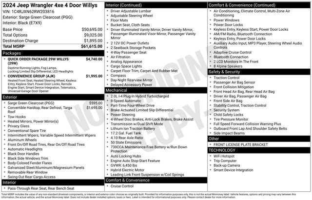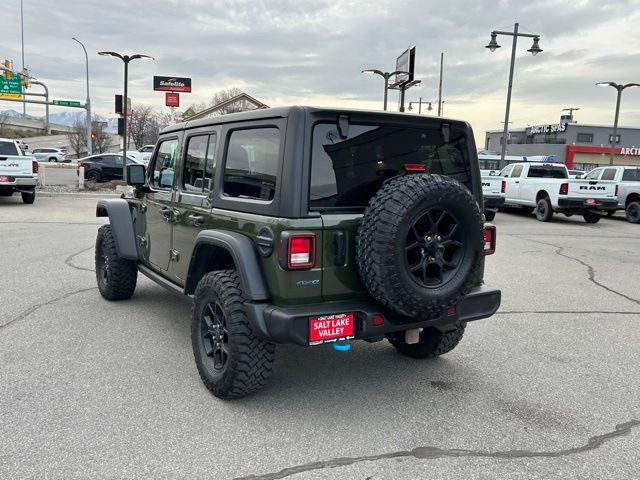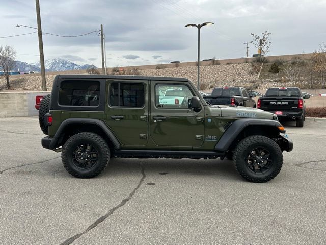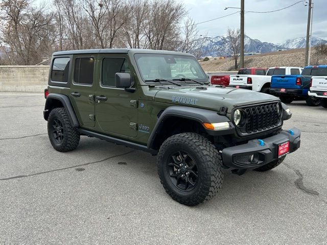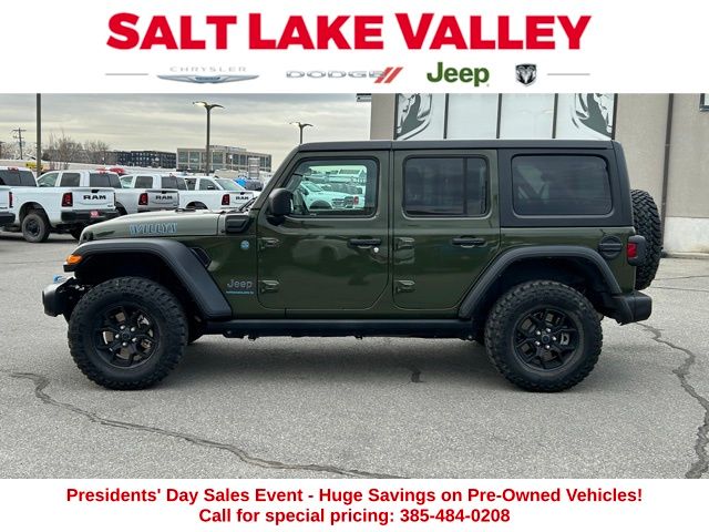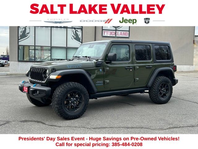 Get ready to hit the road in this Jeep Wrangler, a standout choice for drivers looking for reliability, performance, and style! This impressive vehicle is packed with premium features designed to make every drive more enjoyable. Plus, youâll enjoy a $1,000 finance savings, already included in the sale price, when you finance through one of our trusted lending partners. Whether youâre searching for used cars in Salt Lake City, a dependable SUV, or a powerful truck, this Jeep Wrangler delivers everything you need and more. Visit Salt Lake Valley Chrysler Dodge Jeep Ram today to test drive or explore our entire selection of quality pre-owned vehicles. Donât wait - shop online at www.slvcdjr.com or call 801-484-8755 to learn more! This amazing vehicle comes loaded with options like Convenience Group (2-Door Passive Entry, Front Door Locks, Emergency/Assistance Call, Heated Front Seats, Heated Steering Wheel, Remote Start System, and Universal Garage Door Opener), Quick Order Package 29W Willys (4xe 4-Wheel Drive Swing Gate Decal, 7 & 4 Pin Wiring Harness, 97 MPH Vehicle Max Speed Calibration, Auxiliary Switches, Black Grille, Conventional Differential Front Axle, E-Locker Rear Axle, Front LED Fog Lamps, LED Premium Reflector Headlamps, Molded in Color Rubicon Highline Flare, MOPAR All-Weather Floor Mats, Off-Road Plus Mode, Wheels: 17" x 7.5" Painted Black, Willy's Suspension, Willys, and Willys 4xe Hood Decal), 4-Wheel Disc Brakes, 8 Speakers, ABS brakes, Air Conditioning, Alloy wheels, Apple CarPlay/Android Auto, Automatic temperature control, Black 3-Piece Hard Top, Brake assist, Cloth Low-Back Bucket Seats, Compass, Delay-off headlights, Driver door bin, Driver vanity mirror, Dual front impact airbags, Dual front side impact airbags, Electronic Stability Control, Freedom Panel Storage Bag, Front anti-roll bar, Front Bucket Seats, Front Center Armrest w/Storage, Front dual zone A/C, Front fog lights, Front License Plate Bracket, Front reading lights, Fully automatic headlights, Heated door mirrors, Illuminated entry, Integrated roll-over protection, Low tire pressure warning, No Soft Top, Occupant sensing airbag, Outside temperature display, Overhead airbag, Panic alarm, ParkView Rear Back-Up Camera, Passenger door bin, Passenger vanity mirror, Power door mirrors, Power steering, Power windows, Radio data system, Radio: Uconnect 5 w/12.3" Display, Rear anti-roll bar, Rear reading lights, Rear Window Defroster, Rear Window Wiper/Washer, Remote keyless entry, Security system, Speed control, Split folding rear seat, Sport Suspension, Steering wheel mounted audio controls, Tachometer, Telescoping steering wheel, Tilt steering wheel, Traction control, Trip computer, Variably intermittent wipers, Voltmeter, and Wheels: 20" x 8" Machined/Painted Gray, making it the perfect choice for your next adventure.
