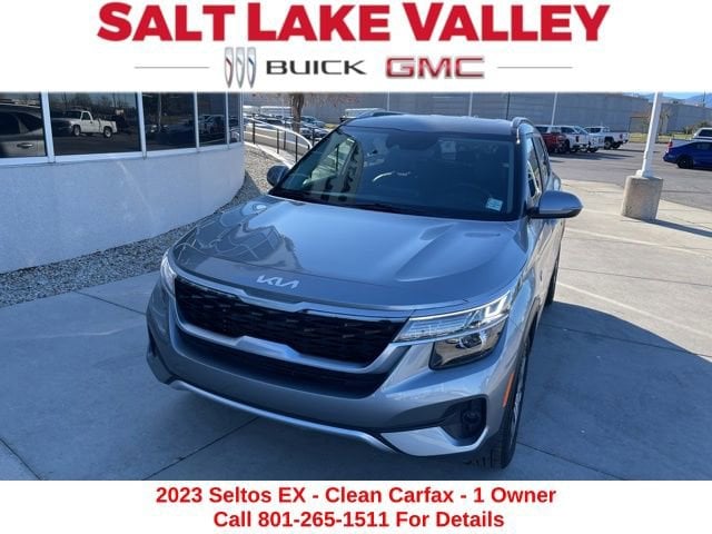 Take your drives to the next level with this Kia Seltos from Salt Lake Valley Buick GMC! Engineered for a smooth ride, advanced convenience, and lasting dependability, this vehicle is ready to handle everything your day throws at you. Plus, enjoy a $1,000 finance savings, already included in the sale price, when you finance through one of our trusted lending partners. Looking for quality used cars in Salt Lake City? This Kia Seltos delivers style, versatility, and value - perfect for daily commutes, family trips, or weekend adventures. Stop by Salt Lake Valley Buick GMC to see this vehicle in person and explore our wide selection of pre-owned cars, trucks, and SUVs. Browse online at www.slvbuickgmc.com or call 801-265-1511 to schedule your test drive today! With 4-Wheel Disc Brakes, 6 Speakers, 6.052 Axle Ratio, ABS brakes, Air Conditioning, Alloy wheels, AM/FM radio: SiriusXM, Apple CarPlay & Android Auto, Auto Dimming Mirror w/HomeLink & Compass, Auto High-beam Headlights, Automatic temperature control, Brake assist, Bumpers: body-color, Cargo Tray, Carpet Floor Mats, Delay-off headlights, Driver door bin, Driver vanity mirror, Dual front impact airbags, Dual front side impact airbags, Electronic Stability Control, Emergency communication system: 911 Connect, Exterior Parking Camera Rear, Four wheel independent suspension, Front anti-roll bar, Front Bucket Seats, Front Center Armrest, Front fog lights, Front reading lights, Fully automatic headlights, Heated door mirrors, Heated Front Bucket Seats, Heated front seats, Illuminated entry, Leather Shift Knob, Lifestyle Hitch, Low tire pressure warning, Navigation System, Occupant sensing airbag, Outside temperature display, Overhead airbag, Overhead console, Panic alarm, Passenger door bin, Passenger vanity mirror, Power door mirrors, Power driver seat, Power moonroof, Power steering, Power windows, Radio: AM/FM/MP3 Display Audio w/Navigation, Rear seat center armrest, Rear window defroster, Rear window wiper, Remote keyless entry, Security system, Sofino Premium Leatherette Seat Trim, Speed control, Speed-sensing steering, Split folding rear seat, Spoiler, Steering wheel mounted audio controls, Tachometer, Telescoping steering wheel, Tilt steering wheel, Traction control, Trip computer, Turn signal indicator mirrors, Variably intermittent wipers, and Wheels: 17 Alloy w/Machined Finish designed for convenience and enjoyment, this Kia Seltos is ready to take you wherever you want to go.