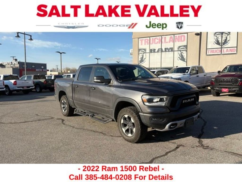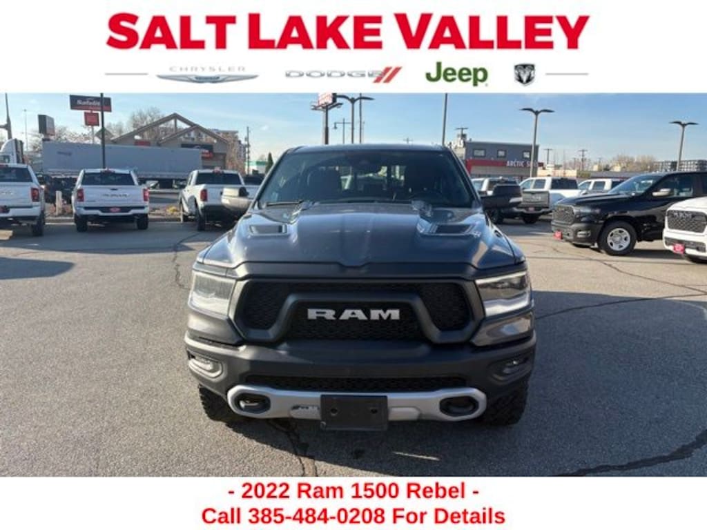 Get ready to hit the road in this Ram 1500, a standout choice for drivers looking for reliability, performance, and style! This impressive vehicle is packed with premium features designed to make every drive more enjoyable. Plus, youâll enjoy a $1,000 finance savings, already included in the sale price, when you finance through one of our trusted lending partners. Whether youâre searching for used cars in Salt Lake City, a dependable SUV, or a powerful truck, this Ram 1500 delivers everything you need and more. Visit Salt Lake Valley Chrysler Dodge Jeep Ram today to test drive or explore our entire selection of quality pre-owned vehicles. Donât wait - shop online at www.slvcdjr.com or call 801-484-8755 to learn more! This amazing vehicle comes loaded with options like Quick Order Package 27W Rebel, Rebel Level 1 Equipment Group (2nd Row In Floor Storage Bins, 4G LTE Wi-Fi Hot Spot, 8.4" Touchscreen Display, Apple CarPlay, Auto-Dimming Exterior Driver Mirror, Black Exterior Mirrors, Black Premium Power Mirrors, Bluetooth Handsfree Phone & Audio, Connectivity - US/Canada, Convex Wide-Angle Mirror Insert, Exterior Mirrors Courtesy Lamps, Exterior Mirrors w/Heating Element, Exterior Mirrors w/Supplemental Signals, Foam Bottle Insert (Door Trim Panel), For Details, Visit DriveUconnect.com, Global Telematics Box Module (TBM), Google Android Auto, GPS Antenna Input, Heated Front Seats, Heated Steering Wheel, Integrated Center Stack Radio, Power Adjustable Pedals, Power-Folding Mirrors, Radio: Uconnect 5 W w/8.4" Display, Rear Dome w/On/Off Switch Lamp, Rear Window Defroster, SiriusXM Radio Service, SiriusXM Satellite Radio, Sun Visors w/Illuminated Vanity Mirrors, Universal Garage Door Opener, and USB Host Flip), 3.92 Rear Axle Ratio, 33 Gallon Fuel Tank, 4 Way Front Headrests, 4-Wheel Disc Brakes, 48V Belt Starter Generator, 6 Speakers, ABS brakes, Air Conditioning, Alloy wheels, AM/FM radio: SiriusXM, Auto-dimming Rear-View mirror, Brake assist, Bucket Seats, Cloth/Vinyl Low Back Bucket Seats, Compass, Delay-off headlights, Driver door bin, Dual front impact airbags, Dual front side impact airbags, Electric Shift-On-Demand Transfer Case, Electronic Stability Control, Emergency communication system: SiriusXM Guardian, Front anti-roll bar, Front Bucket Seats, Front Center Armrest w/Storage, Front fog lights, Front License Plate Bracket, Front reading lights, Front Seat Back Map Pockets, Front wheel independent suspension, Full Length Upgraded Floor Console, Fully automatic headlights, Heated door mirrors, Illuminated entry, Integrated Voice Command w/Bluetooth, Leather steering wheel, Low tire pressure warning, Manufacturer's Statement of Origin, Occupant sensing airbag, Outside temperature display, Overhead airbag, Overhead console, Panic alarm, ParkView Rear Back-Up Camera, Passenger door bin, Passenger vanity mirror, Power 2-Way Driver Lumbar Adjust, Power door mirrors, Power driver seat, Power steering, Power windows, Radio data system, Radio: Uconnect 3 w/5" Display, Rear 60/40 Folding Seat, Rear anti-roll bar, Rear seat center armrest, Rear step bumper, Rear Wheelhouse Liners, Remote keyless entry, Remote Start System, Speed control, Split folding rear seat, Steering wheel mounted audio controls, Tachometer, Telescoping steering wheel, Tilt steering wheel, Traction control, Trailer Brake Control, Trip computer, Twill Film Appliques, Variably intermittent wipers, Voltmeter, and Wheels: 18" x 8.0" Painted Mid-Gloss Black, making it the perfect choice for your next adventure. Priced below KBB Fair Purchase Price!