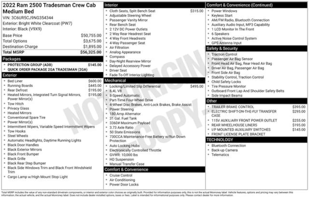 Get ready to hit the road in this Ram 2500, a standout choice for drivers looking for reliability, performance, and style! This impressive vehicle is packed with premium features designed to make every drive more enjoyable. Plus, you’ll enjoy a $1,000 finance savings, already included in the sale price, when you finance through one of our trusted lending partners. Whether you’re searching for used cars in Salt Lake City, a dependable SUV, or a powerful truck, this Ram 2500 delivers everything you need and more. Visit Salt Lake Valley Chrysler Dodge Jeep Ram today to test drive or explore our entire selection of quality pre-owned vehicles. Don’t wait - shop online at www.slvcdjr.com or call 801-484-8755 to learn more! This amazing vehicle comes loaded with options like Protection Group, Quick Order Package 2GA Tradesman, 115V Auxiliary Front Power Outlet, 17" x 7.5" Steel Styled Wheels, 2 Way Rear Headrest Seat, 3.73 Axle Ratio, 4 Way Front Headrests, 4-Wheel Disc Brakes, 40/20/40 Split Bench Seat, 400W Inverter, 6 Speakers, ABS brakes, Active Noise Control System, Air Conditioning, AM/FM radio, Anti-Spin Differential Rear Axle, Black Exterior Mirrors, Brake assist, Center Hub, Compass, Dash Pass Thru Wire Circuits, Delay-off headlights, Driver door bin, Dual front impact airbags, Dual front side impact airbags, Electric Shift-On-The-Fly Transfer Case, Electronic Stability Control, Electronically Controlled Throttle, Emergency communication system: SiriusXM Guardian, Exterior 115V AC Outlet, Exterior Mirrors Courtesy Lamps, Exterior Mirrors w/Heating Element, Exterior Mirrors w/Supplemental Signals, Front anti-roll bar, Front Center Armrest w/Storage, Front License Plate Bracket, Front reading lights, Fully automatic headlights, Global Telematics Box Module (TBM), GPS Antenna Input, Heated door mirrors, Heavy Duty Vinyl 40/20/40 Split Bench Seat, I/P Mounted Auxiliary Switches, Illuminated entry, Integrated Voice Command w/Bluetooth, Low tire pressure warning, Manual Adjust 4-Way Driver Seat, Mirror Running Lights, MOPAR Spray In Bedliner, Occupant sensing airbag, Outside temperature display, Overhead airbag, Overhead console, ParkView Rear Back-Up Camera, Passenger door bin, Passenger vanity mirror, Power Adjust & Heated Black Tow Mirrors, Power door mirrors, Power steering, Power windows, Radio data system, Radio: Uconnect 3 w/5" Display, Rear anti-roll bar, Rear Folding Seat, Rear step bumper, Rear Wheelhouse Liners, Rear Window Defroster, Selectable Tire Fill Alert, SiriusXM Radio Service, Speed control, Storage Tray, Tachometer, Tilt steering wheel, Tip Start, Tow Hooks, Traction control, Trailer Brake Control, Trailer Light Check, Trailer Tow Mirrors, Variably intermittent wipers, Vendor Painted Cargo Box, Vendor Painted Cargo Box Tracking, and Voltmeter, making it the perfect choice for your next adventure. Priced below KBB Fair Purchase Price!