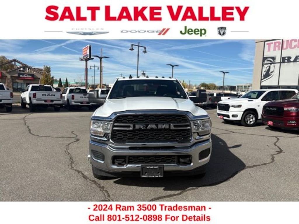 Get ready to hit the road in this Ram 3500, a standout choice for drivers looking for reliability, performance, and style! This impressive vehicle is packed with premium features designed to make every drive more enjoyable. Plus, youâll enjoy a $1,000 finance savings, already included in the sale price, when you finance through one of our trusted lending partners. Whether youâre searching for used cars in Salt Lake City, a dependable SUV, or a powerful truck, this Ram 3500 delivers everything you need and more. Visit Salt Lake Valley Chrysler Dodge Jeep Ram today to test drive or explore our entire selection of quality pre-owned vehicles. Donât wait - shop online at www.slvcdjr.com or call 801-484-8755 to learn more! This amazing vehicle comes loaded with options like Chrome Appearance Group (Bright Front Bumper, Bright Rear Bumper, Bright Wheel Skins, Center Hub, Chrome Grille Surround, Chrome Headlamp Bezels, and Matte Black Mesh w/Chrome Grille), Quick Order Package 2HA Tradesman, Tradesman Level 1 Equipment Group, 2 Way Rear Headrest Seat, 3.73 Axle Ratio, 4 Way Front Headrests, 4-Wheel Disc Brakes, 40/20/40 Split Bench Seat, 50 Gallon Fuel Tank, 6 Speakers, 6000# Front Axle w/Hub Ext, ABS brakes, Active Noise Control System, Air Conditioning, AM/FM radio, Auto Level Rear Air Suspension, Black Exterior Mirrors, Box & Rear Fender Clearance Lamps, Brake assist, Clearance Lamps, Compass, Delay-off headlights, Driver door bin, Dual front impact airbags, Dual front side impact airbags, Dual Rear Wheels, Electronic Stability Control, Electronically Controlled Throttle, Emergency communication system: SiriusXM Guardian, For Details Visit DriveUconnect.com, Front anti-roll bar, Front Armrest w/Cupholders, Front Center Armrest w/Storage, Front License Plate Bracket, Front reading lights, Fully automatic headlights, Global Telematics Box Module (TBM), GPS Antenna Input, HD Vinyl 40/20/40 Split Bench Seat, Illuminated entry, Integrated Voice Command w/Bluetooth, Low tire pressure warning, Manual Adjust 4-Way Driver Seat, Manual Adjust 4-Way Front Passenger Seat, Manual Folding Exterior Mirrors, Manual Telescoping Mirrors, Occupant sensing airbag, Outside temperature display, Overhead airbag, Overhead console, Panic alarm, ParkView Rear Back-Up Camera, Passenger door bin, Passenger vanity mirror, Power steering, Power windows, Radio data system, Radio: Uconnect 3 w/5" Display, Rear Folding Seat, Rear step bumper, Rear Wheelhouse Liners, Remote keyless entry, Remote USB Port - Charge Only, Speed control, Storage Tray, Tachometer, Tilt steering wheel, Tip Start, Traction control, Trailer Brake Control, Trailer Light Check, Variably intermittent wipers, Voltmeter, Wheels: 17" x 6.0" Steel Argent, Wheels: 17" x 6.0" Steel Chrome Clad, and Wheels: 18" x 8.0" Steel, making it the perfect choice for your next adventure.