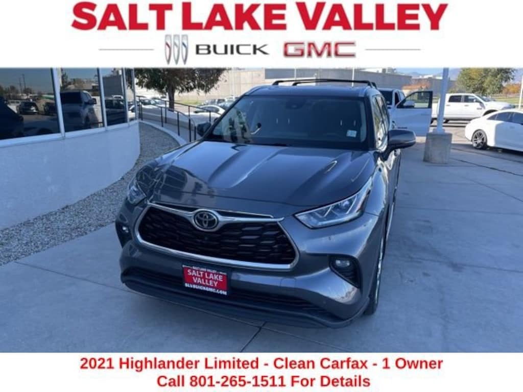 Take your drives to the next level with this Toyota Highlander from Salt Lake Valley Buick GMC! Engineered for a smooth ride, advanced convenience, and lasting dependability, this vehicle is ready to handle everything your day throws at you. Plus, enjoy a $1,000 finance savings, already included in the sale price, when you finance through one of our trusted lending partners. Looking for quality used cars in Salt Lake City? This Toyota Highlander delivers style, versatility, and value - perfect for daily commutes, family trips, or weekend adventures. Stop by Salt Lake Valley Buick GMC to see this vehicle in person and explore our wide selection of pre-owned cars, trucks, and SUVs. Browse online at www.slvbuickgmc.com or call 801-265-1511 to schedule your test drive today! With 11 Speakers, 20 Alloy Wheels, 3.003 Axle Ratio, 3rd row seats: split-bench, 4-Wheel Disc Brakes, ABS brakes, Air Conditioning, Alloy wheels, AM/FM radio: SiriusXM, Apple CarPlay/Android Auto, Auto High-beam Headlights, Auto-dimming Rear-View mirror, Automatic temperature control, Brake assist, Bumpers: body-color, Chrome wheels, Delay-off headlights, Driver door bin, Driver vanity mirror, Dual front impact airbags, Dual front side impact airbags, Electronic Stability Control, Emergency communication system: Safety Connect with 1-year trial, Exterior Parking Camera Rear, Four wheel independent suspension, Front anti-roll bar, Front Bucket Seats, Front Center Armrest, Front dual zone A/C, Front fog lights, Front reading lights, Fully automatic headlights, Garage door transmitter: HomeLink, Heated door mirrors, Heated front seats, Heated steering wheel, Heated/Ventilated Front Bucket Seats, Illuminated entry, Knee airbag, Leather Seat Trim, Leather Shift Knob, Low tire pressure warning, Memory seat, Navigation system: Dynamic Navigation (3-year trial), Occupant sensing airbag, Outside temperature display, Overhead airbag, Overhead console, Panic alarm, Passenger door bin, Passenger vanity mirror, Power door mirrors, Power driver seat, Power Liftgate, Power moonroof, Power passenger seat, Power steering, Power windows, Radio: Premium Audio w/JBL Clari-Fi, Rear air conditioning, Rear anti-roll bar, Rear reading lights, Rear window defroster, Rear window wiper, Reclining 3rd row seat, Remote keyless entry, Roof rack: rails only, Security system, Speed control, Speed-sensing steering, Split folding rear seat, Spoiler, Steering wheel mounted audio controls, Tachometer, Telescoping steering wheel, Tilt steering wheel, Traction control, Trip computer, Turn signal indicator mirrors, Variably intermittent wipers, and Ventilated front seats designed for convenience and enjoyment, this Toyota Highlander is ready to take you wherever you want to go.Odometer is 1966 miles below market average!20/27 City/Highway MPGCARFAX One-Owner.Clean CARFAX.