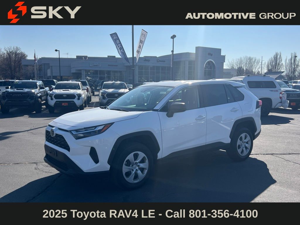White 2025 Toyota RAV4 LE AWD 8-Speed Automatic 2.5L 4-Cylinder DOHC Dual VVT-i AWD, Black Cloth.